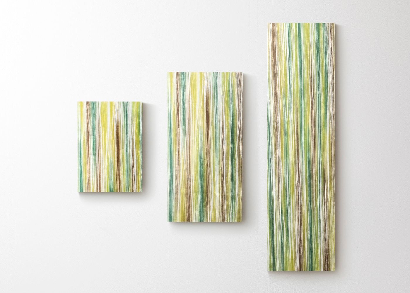 3タイプのサイズ感の比較です。飾る壁面に合わせてお好きなサイズをお選びください。(写真は左から、430×600タイプ、500×1000タイプ、450×1650タイプ)