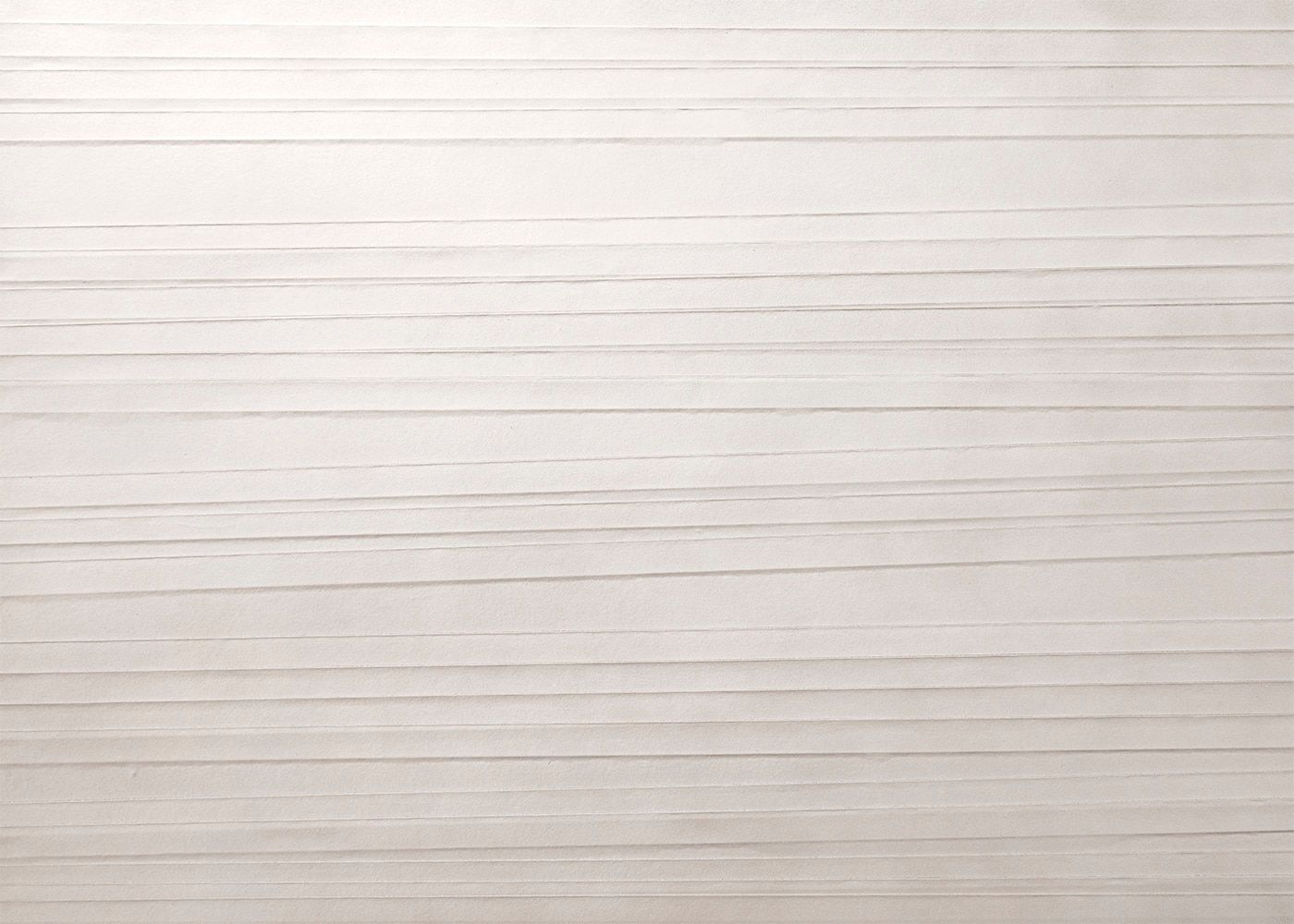 1500年もの長い歴史で培われた、最高の品質と技術を誇る福井県産の「越前和紙」。室町~江戸時代に公家や武士階級の公用紙や明治時代の紙幣として使われるなど、歴史や格式の高さから日本三大和紙の1つとされています。そんな由緒ある和紙に職人が日本伝統の折り紙の「折り」を施し、ほんのわずかな墨で染色することで静穏な雲霞の情景を表現しました。