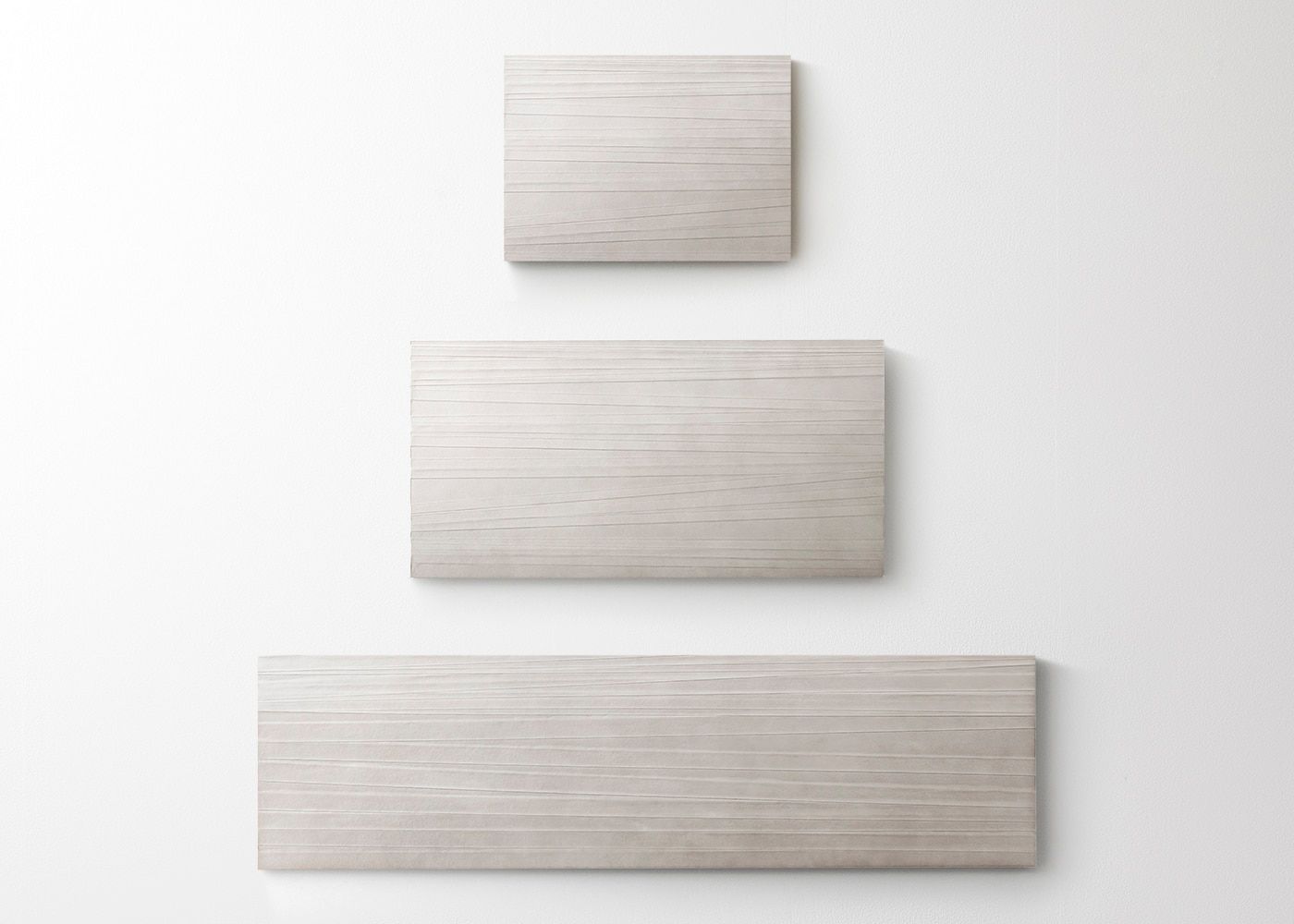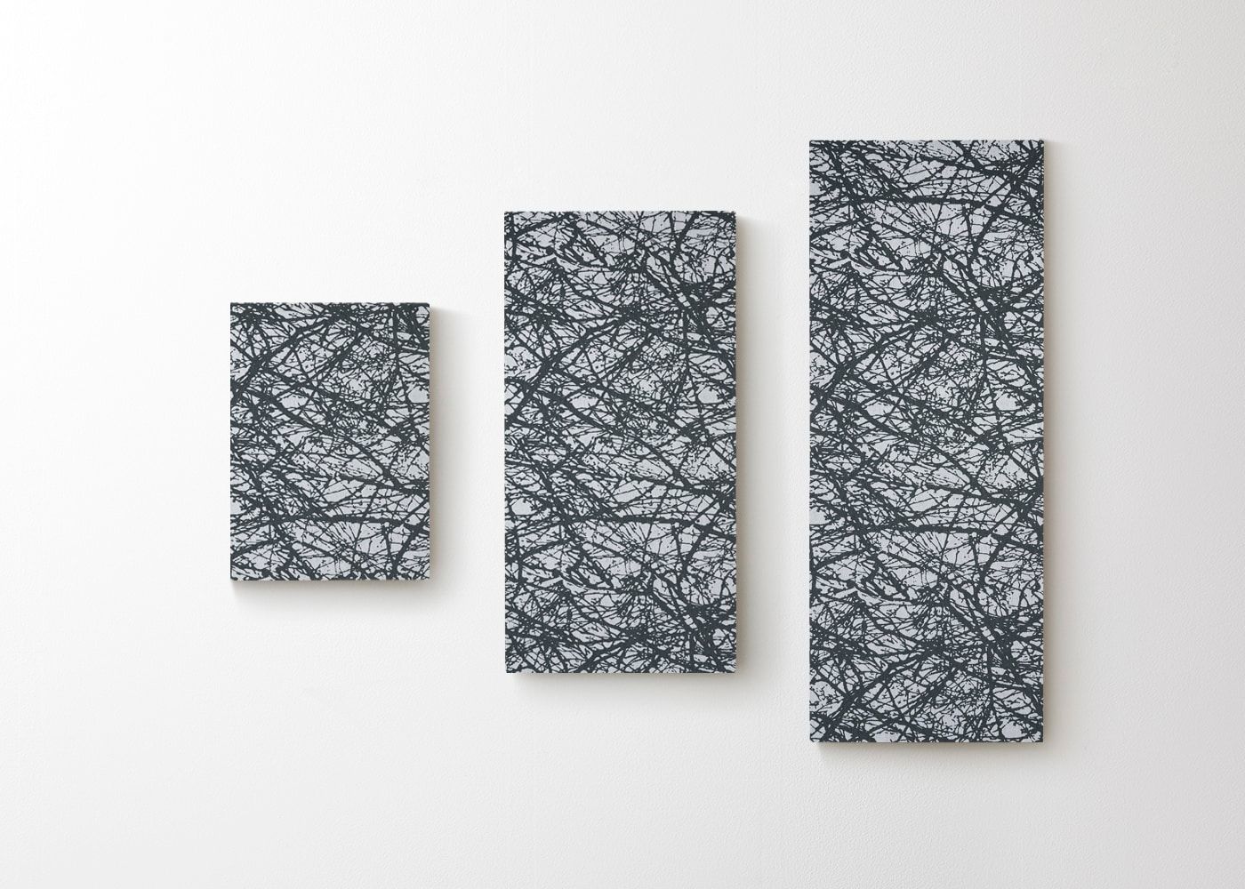 3タイプのサイズ感の比較です。飾る壁面に合わせてお好きなサイズをお選びください。(写真は上から、BCグレー 600×430タイプ、1000×500タイプ、1300×500タイプ)