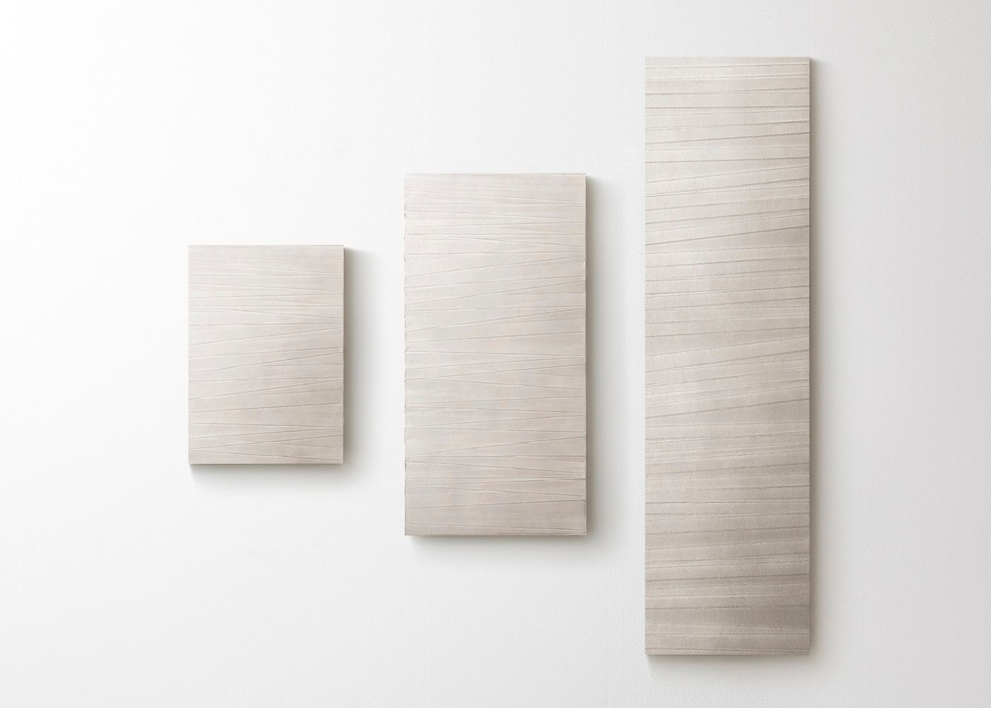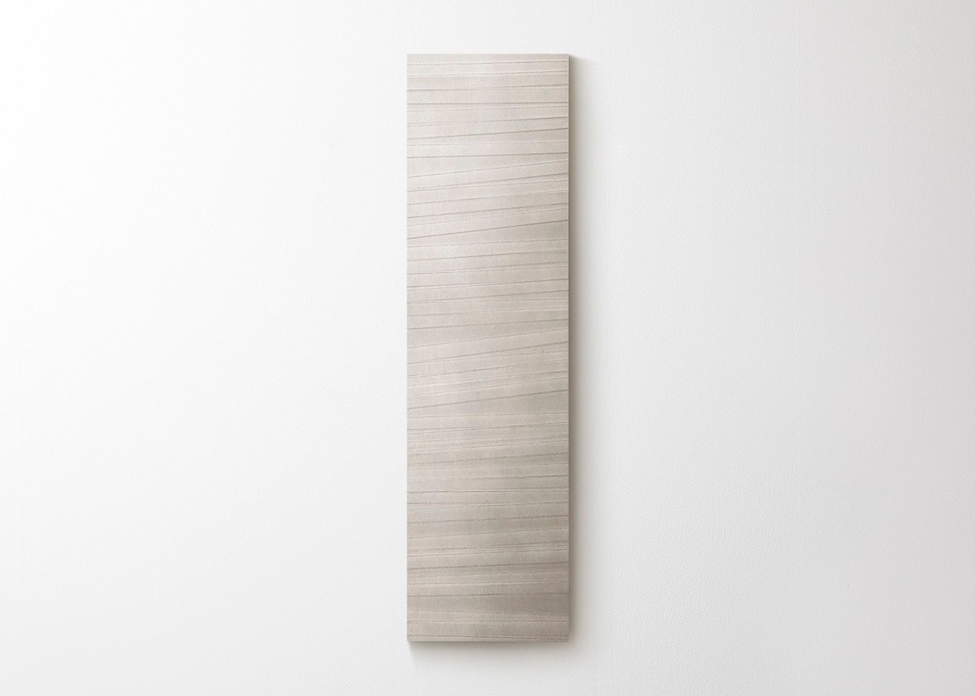 職人が和紙を丁寧に折り重ねることで雲霞の層が生まれます。さらにやさしく包み込む雲の色合いを表現するため、水墨画のような淡いグレーに着色。仕上げに施した銀が放つかすかな光は、わずかな日の光できらめく霞を映し出すと共にどこか高級感を漂わせます。折りや色の染まり具合で表情が変わるため、同じものは1つとして存在しません。a.flatが提案するクラウドグレースタイルを表現した、唯一無二のアート作品を是非ご堪能ください。