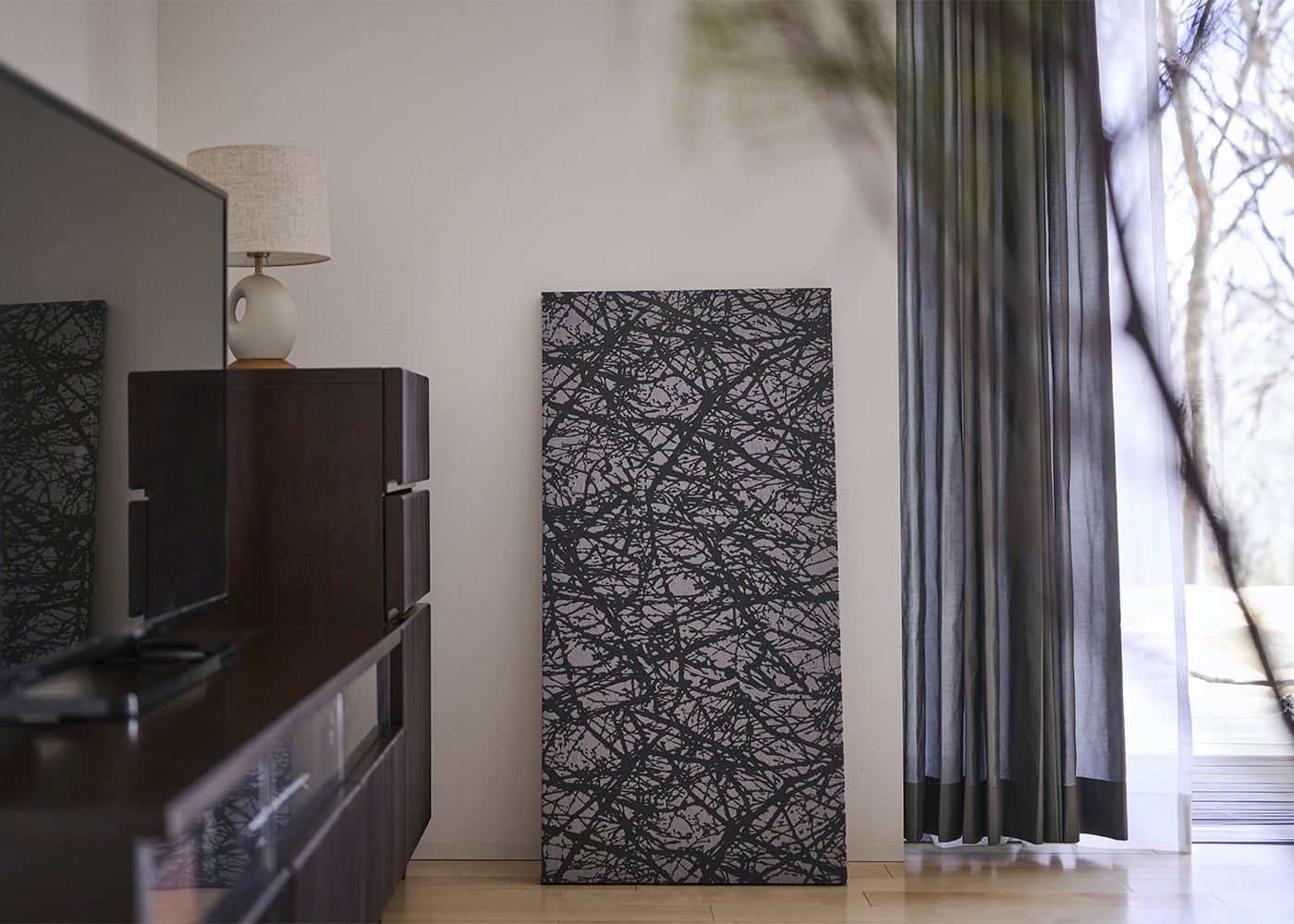クラウドグレー・スタイルの魅力を引き出す雲や霧をイメージしたアートパネルを添えることで、壁面に雲霞のようなアクセントをプラスできます。(写真は1000×500タイプ)