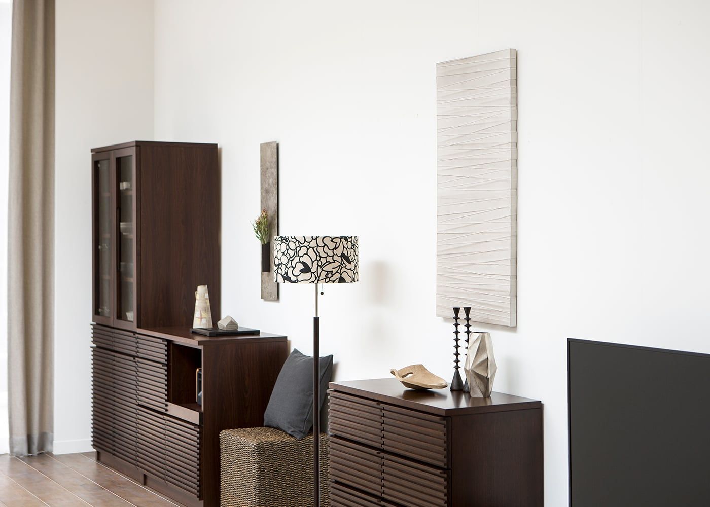 ローボードの上、ベッドルームなどの広い壁面に飾るだけで、穏やかで心落ち着く空間に。(写真は1650×450タイプ)