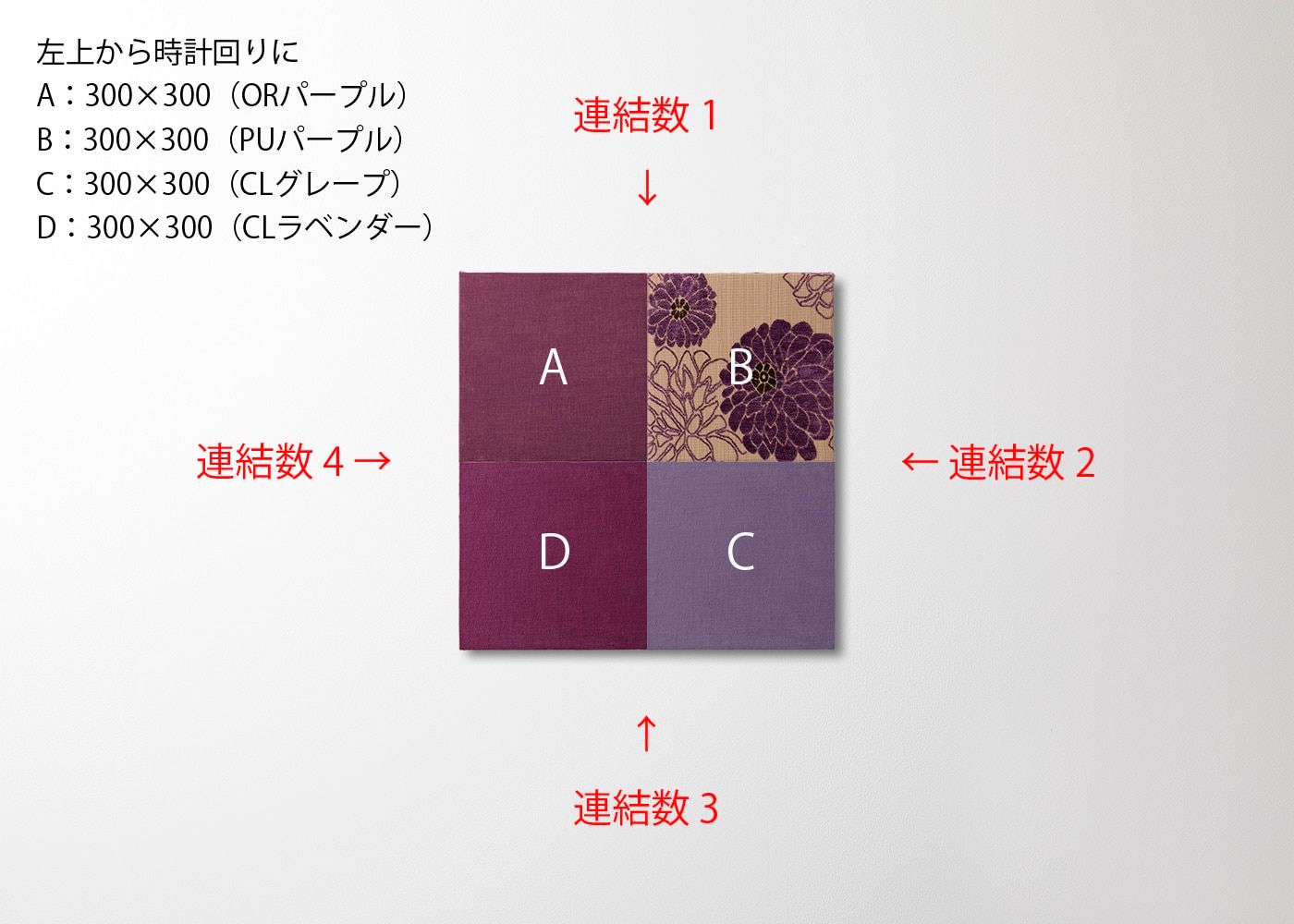 ファブリックパネル (フラワーパープル)の連結例。パネル寸法は600×600mm)