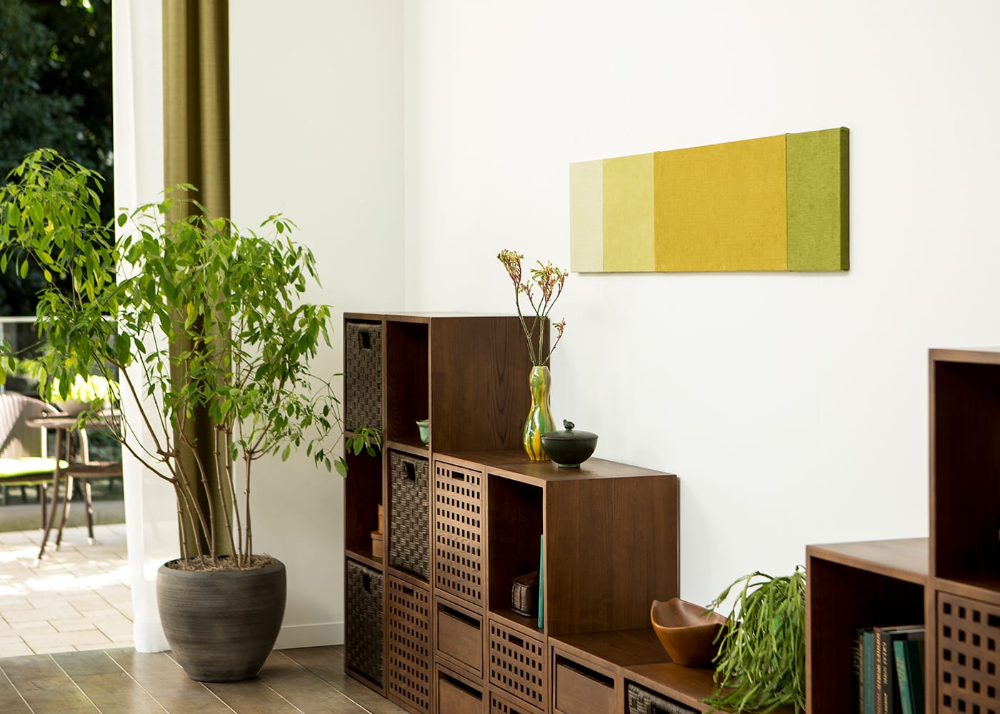 a.flatスタイルを彩り豊かなカラーで表現したファブリックパネルは、単体で飾るのはもちろん、様々な色やサイズをつなげることで自分だけのインテリアアートが作れます。ファブリックパネルを連結して、より魅力的なウォールデコレーションを楽しんでみては。