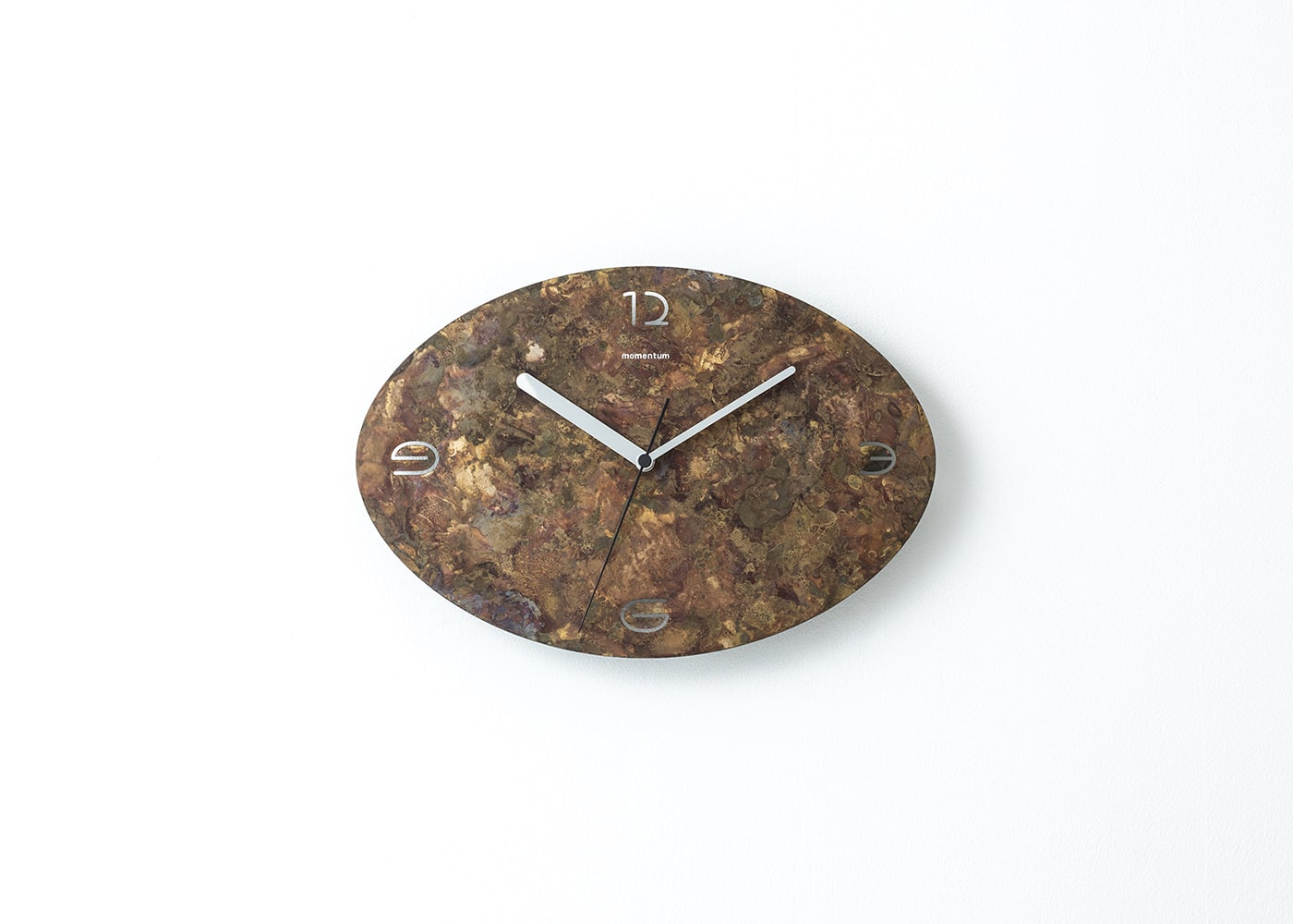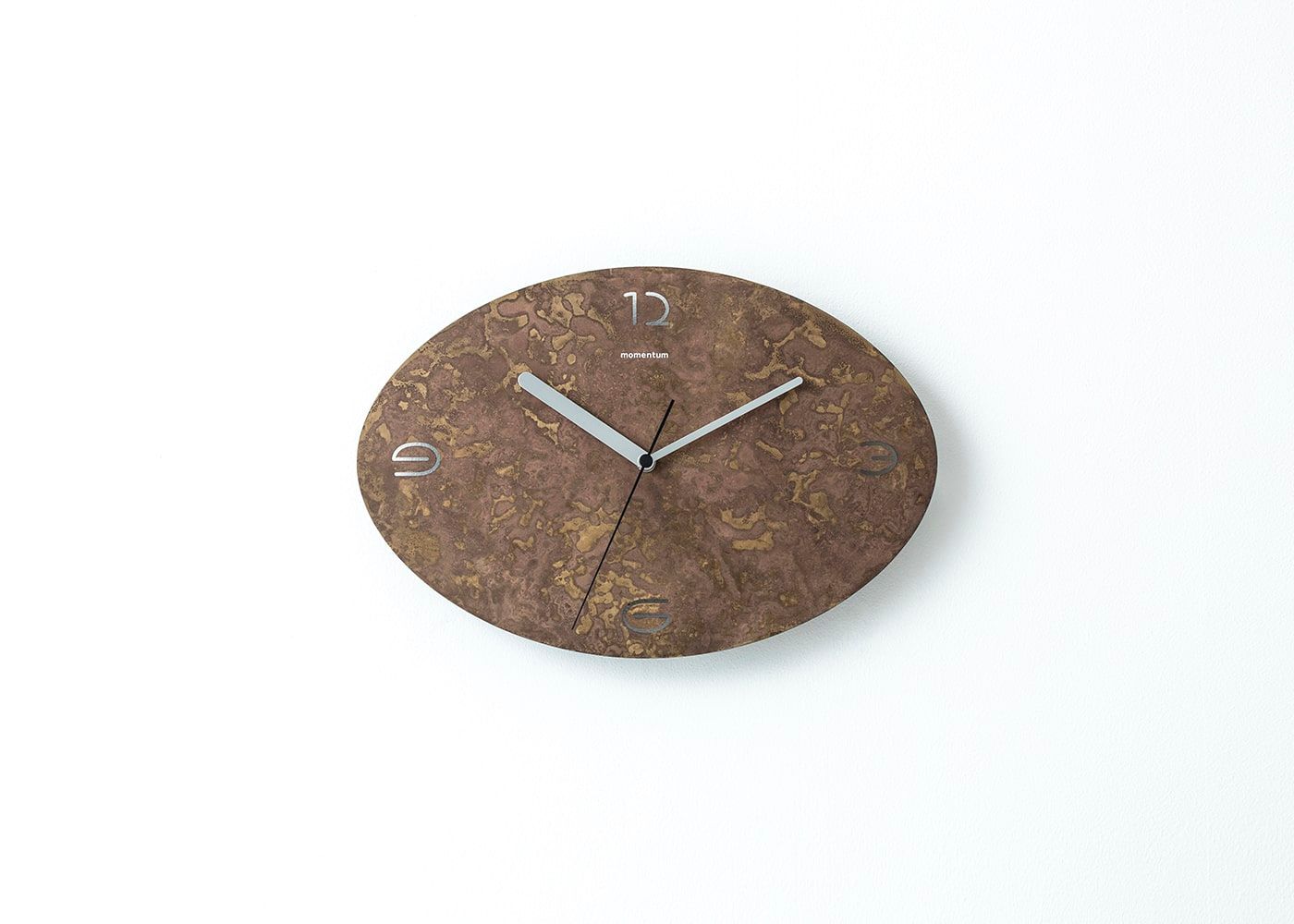 日本を代表する伝統工芸「高岡銅器」の着色技術が織りなす、色鮮やかな発色が堪能できる壁掛け時計・time and space oval L 。丸みのある楕円形によって、空間にやさしい印象をもたらします。銅の美しい色がa.flatの家具に彩りを与えてくれる壁掛け時計です。