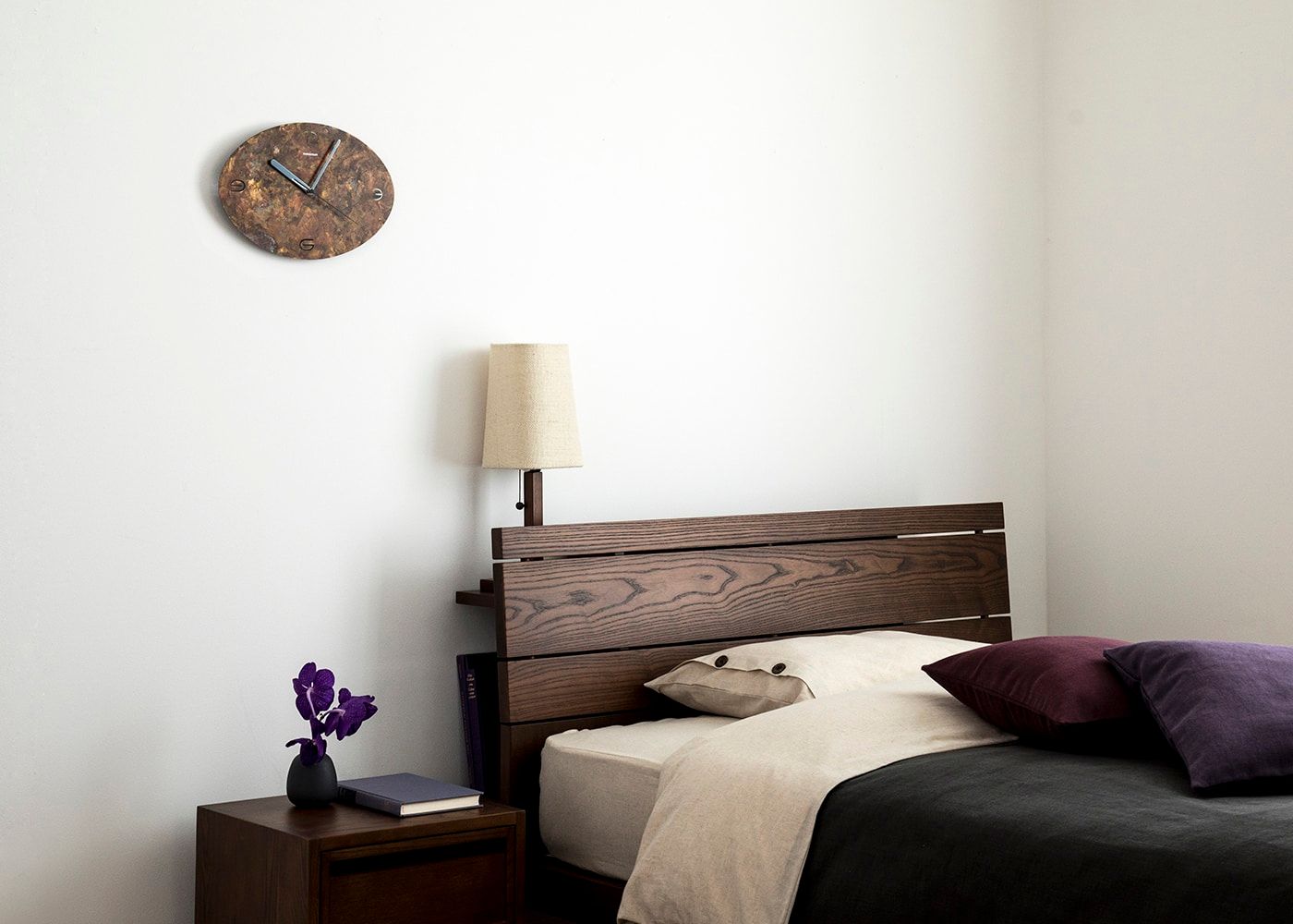 ベッドを中心としたスクエアな雰囲気のアクセントとして映える楕円形のウォールクロックです。