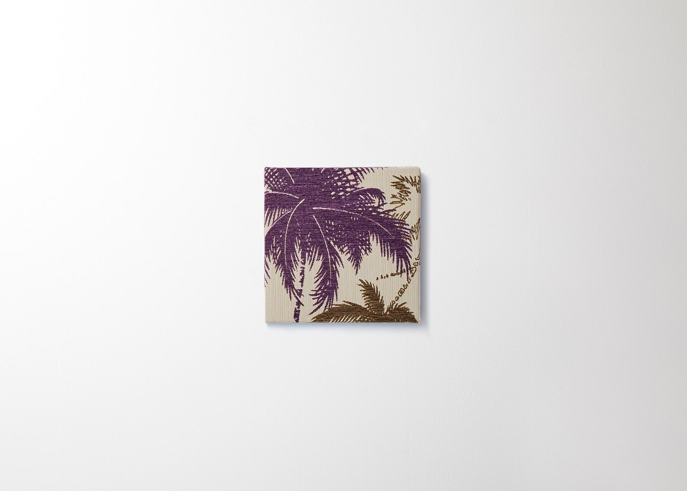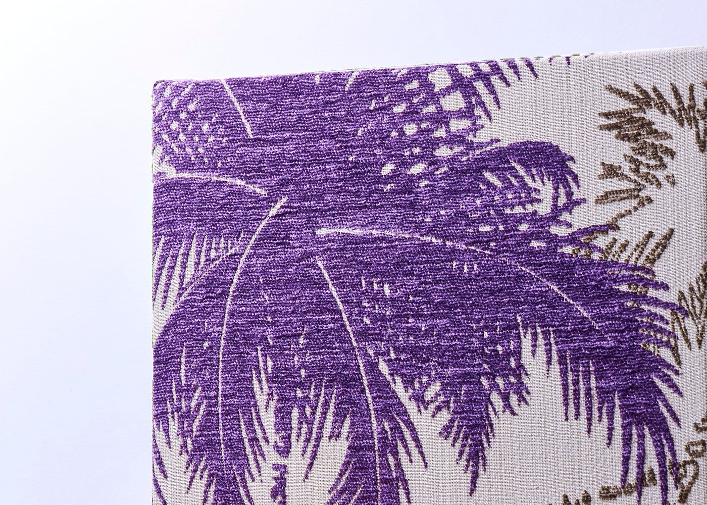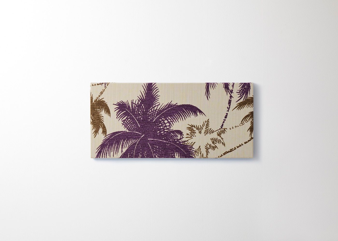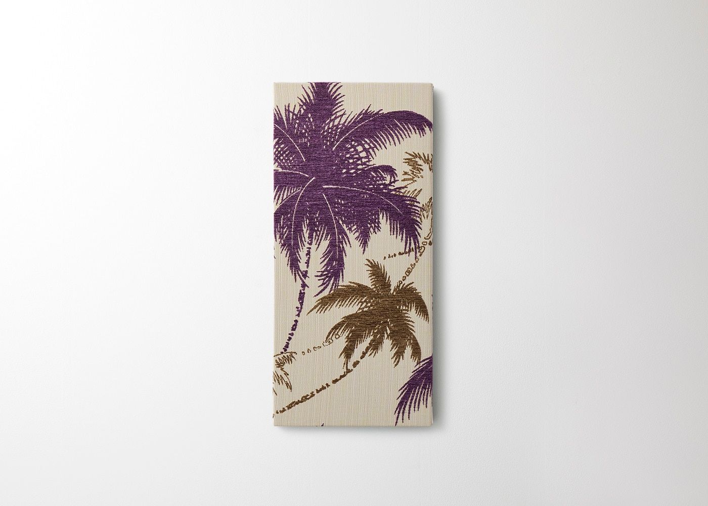 パームは大小のヤシを面と線で細かく描き、立体感と奥行き感のある風景をデザインしたa.flatオリジナルのファブリックパネルです。さらりとしつつも、やわらかな肌触りとボリューム感を味わってください。(写真はPRパープル)