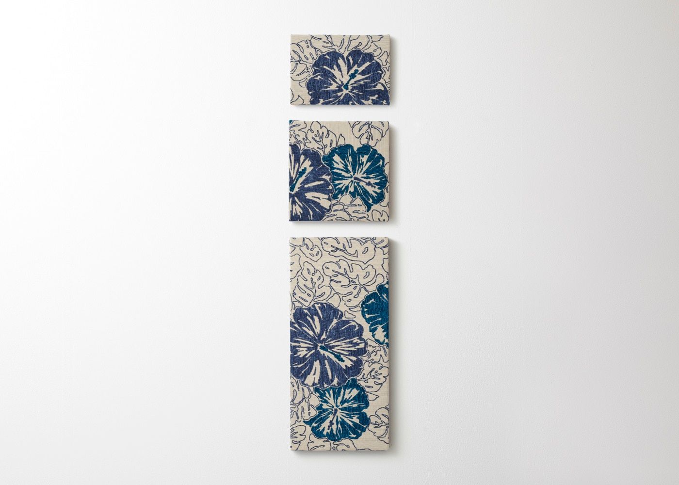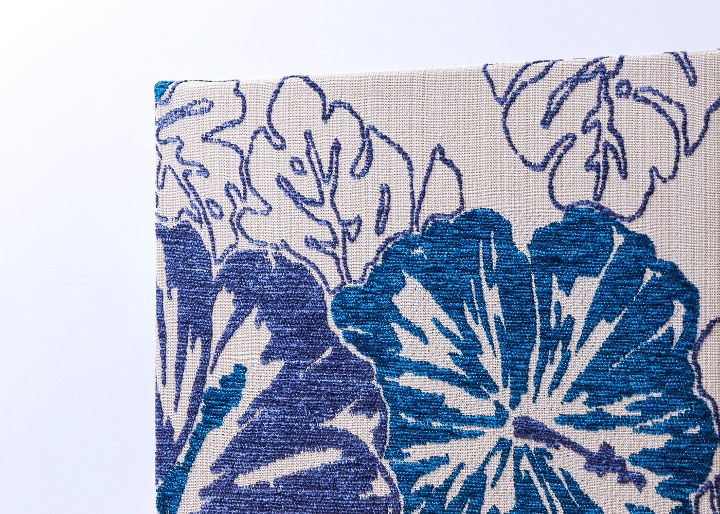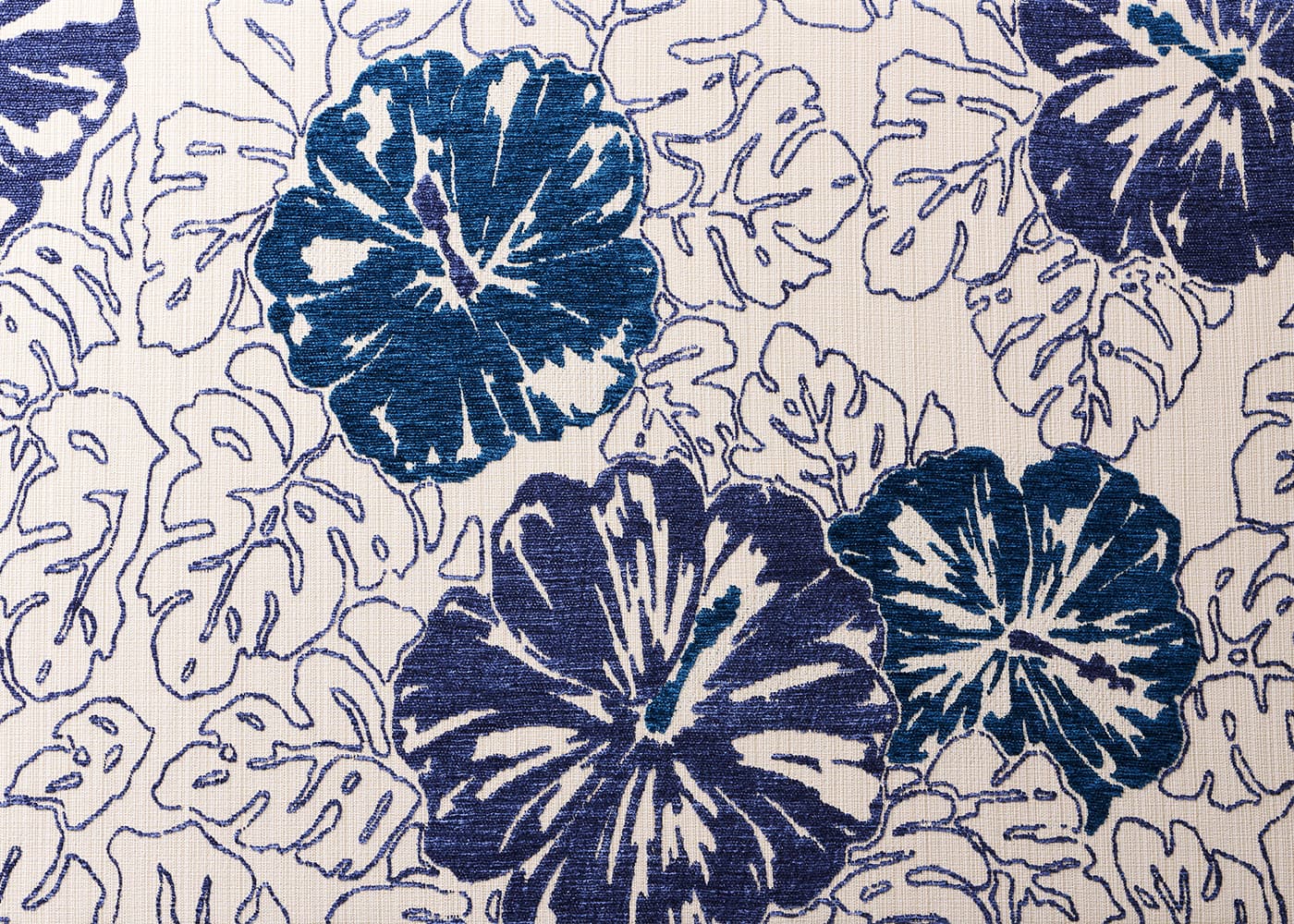 沖縄やハワイ、バリなどのリゾート地に訪れると必ず出迎えてくれる「ハイビスカス」をモチーフにしたa.flatオリジナルのファブリックパネルです。大小異なるサイズ感と濃淡のあるハイビスカスを描いて、奥行き感や自然感を演出し、バックにはモンステラの柄を線でさりげなく施しました。(写真はHBブルー)