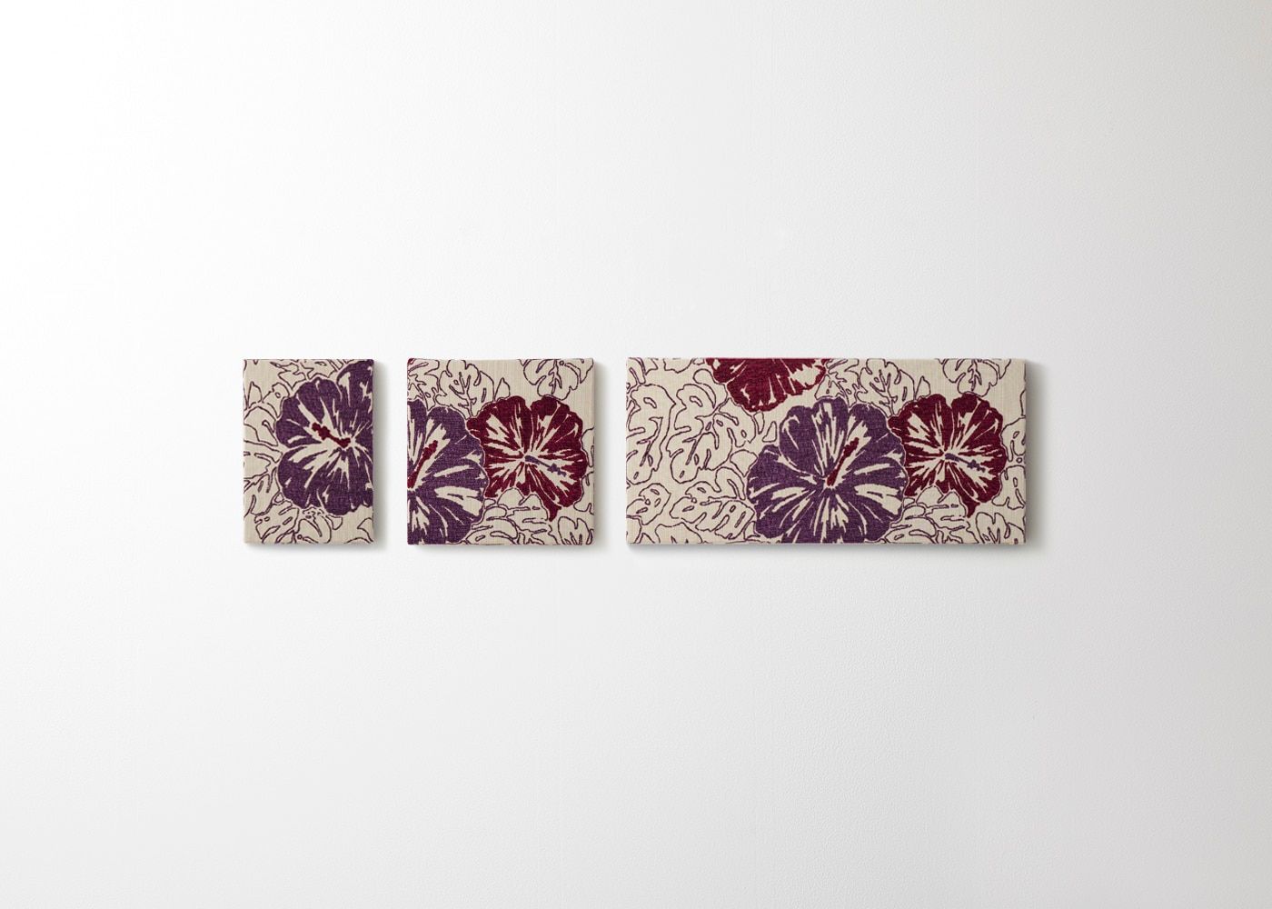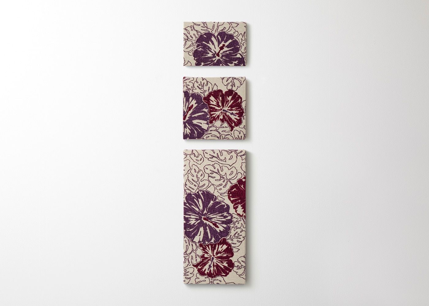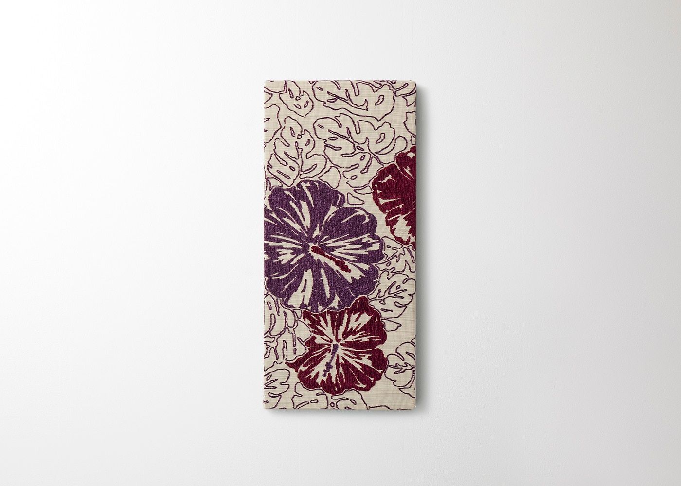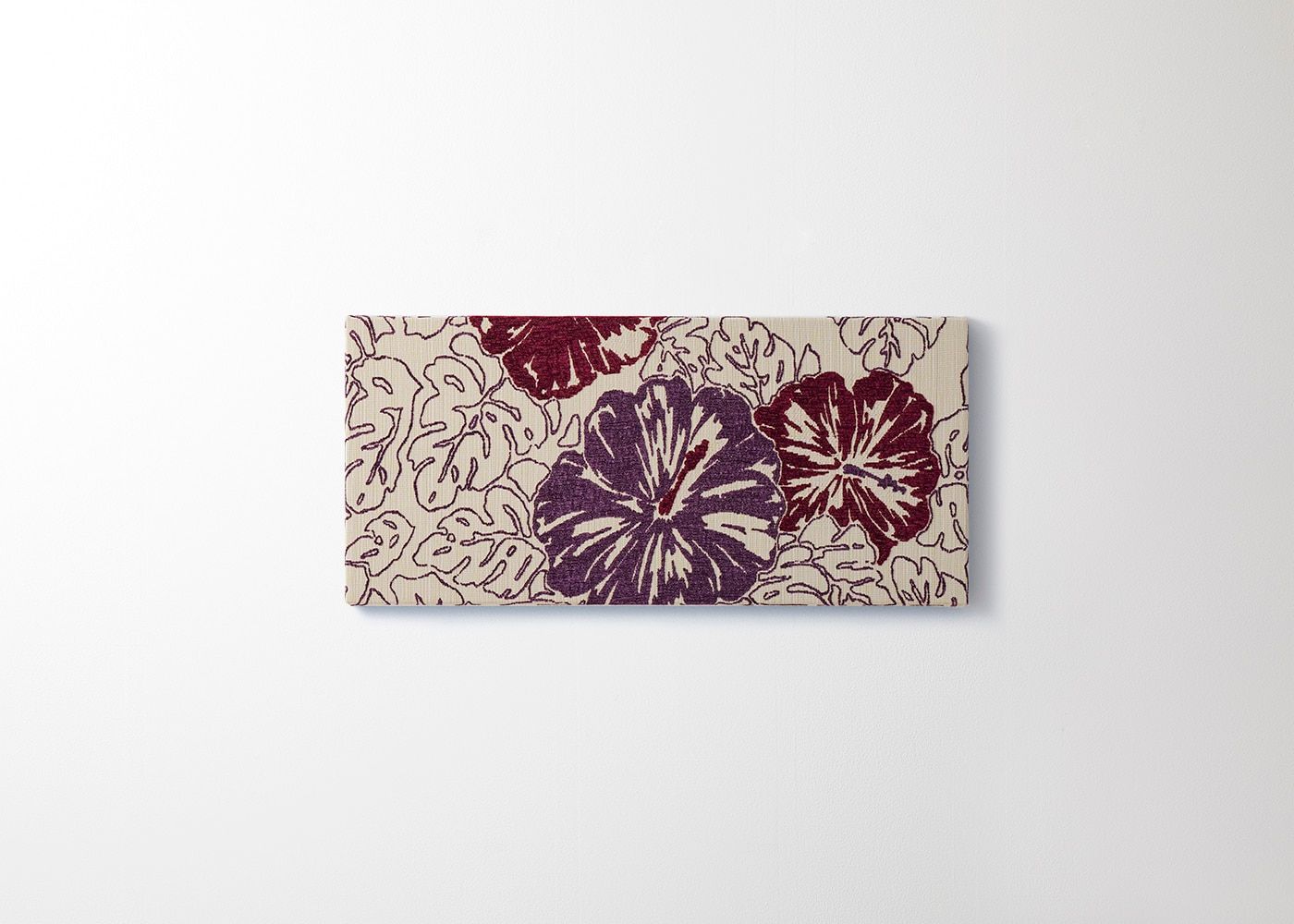 沖縄やハワイ、バリなどのリゾート地に訪れると必ず出迎えてくれる「ハイビスカス」をモチーフにしたa.flatオリジナルのファブリックパネルです。大小異なるサイズ感と濃淡のあるハイビスカスを描いて、奥行き感や自然感を演出し、バックにはモンステラの柄を線でさりげなく施しました。(写真はHBパープル)