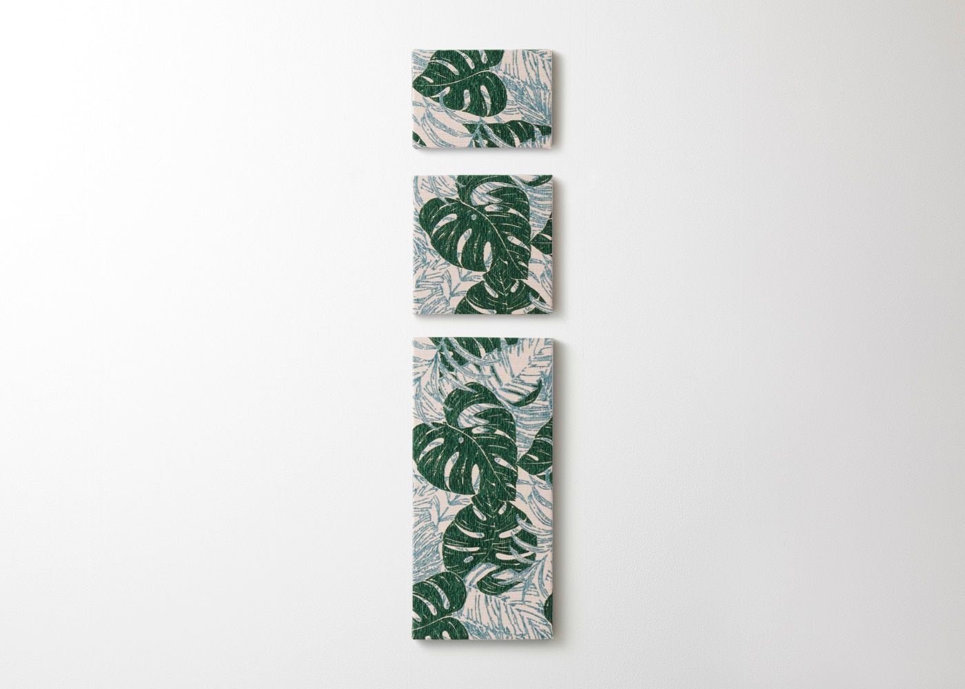 3タイプのサイズ感の比較です。飾る壁面に合わせてお好きなサイズや組み合わせをお選びください。(写真はMSグリーン。左から、 210×300タイプ、300×300タイプ、650×300タイプ。横使い)