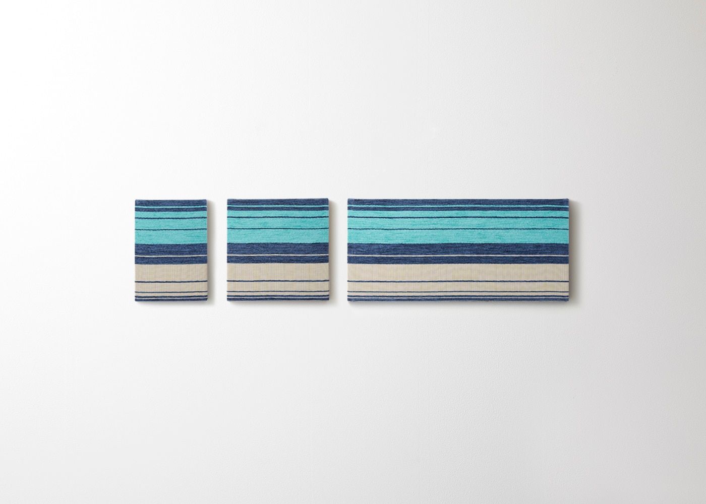 砂浜から海、水平線、空への繋がりをランダムな面と線で平行に描き、美しい自然のグラデーションを再現したa.flatオリジナルのアートパネルです。さらりとしつつも、やわらかな肌触りとボリューム感を味わってください。(写真はILブルー)