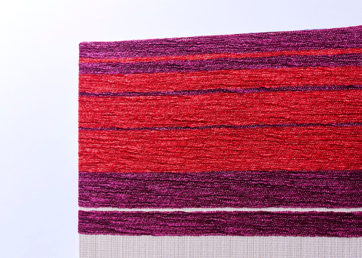 パープルは島々の黄昏時の海辺を連想させる、色鮮やかなグラデーションが魅力です。色とりどりのパープルやレッドをランダムの線で描いたボーダー柄のアートパネルは、自宅にリゾートムードを演出してくれるでしょう。(写真はILパープル)