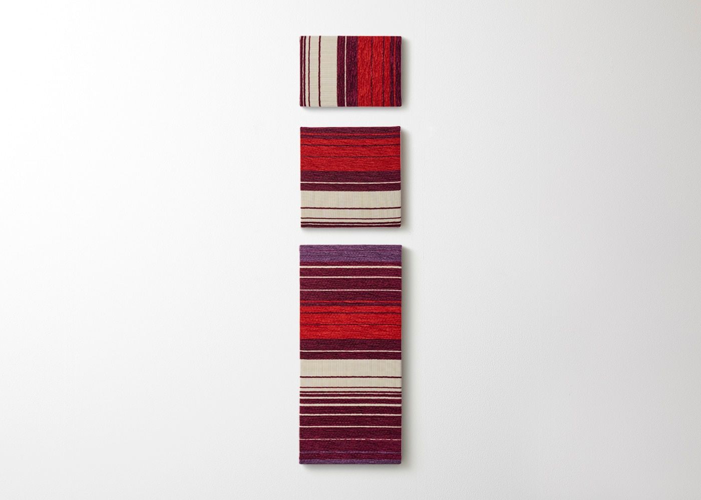 3タイプのサイズ感の比較です。飾る壁面に合わせてお好きなサイズや組み合わせをお選びください。(写真はHBパープル。左から、 210×300タイプ、300×300タイプ、650×300タイプ。横使い)