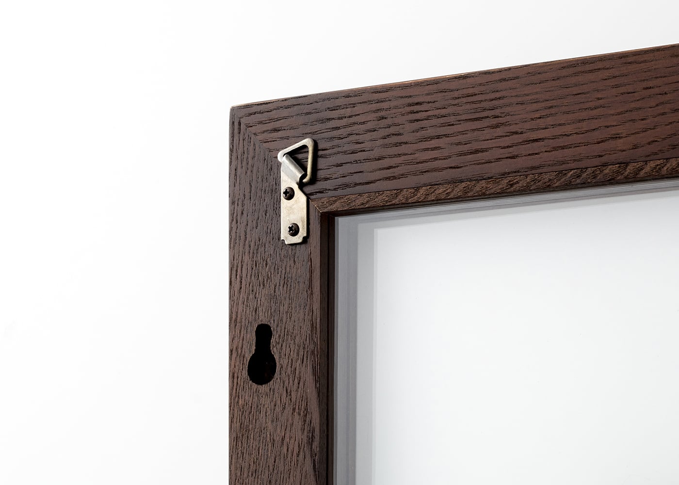 裏面もきれいに仕上げています。木枠の内側全面に透明なアクリル板を張っており、格子は表と裏のアクリル板2枚の間に固定されている構造です。(写真は600×600タイプ ブラウン裏面)