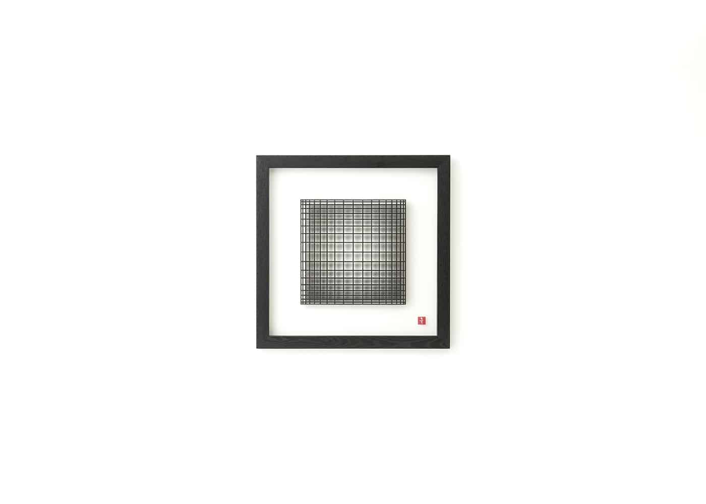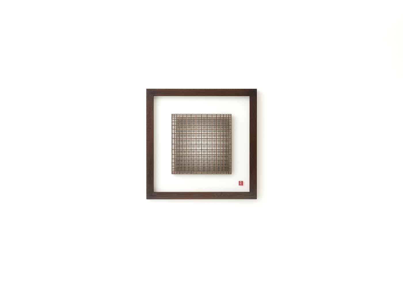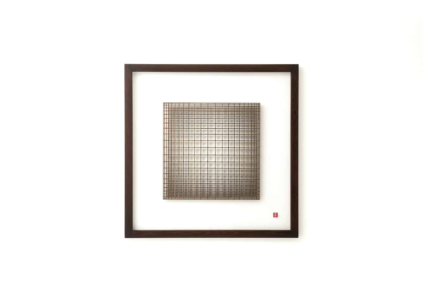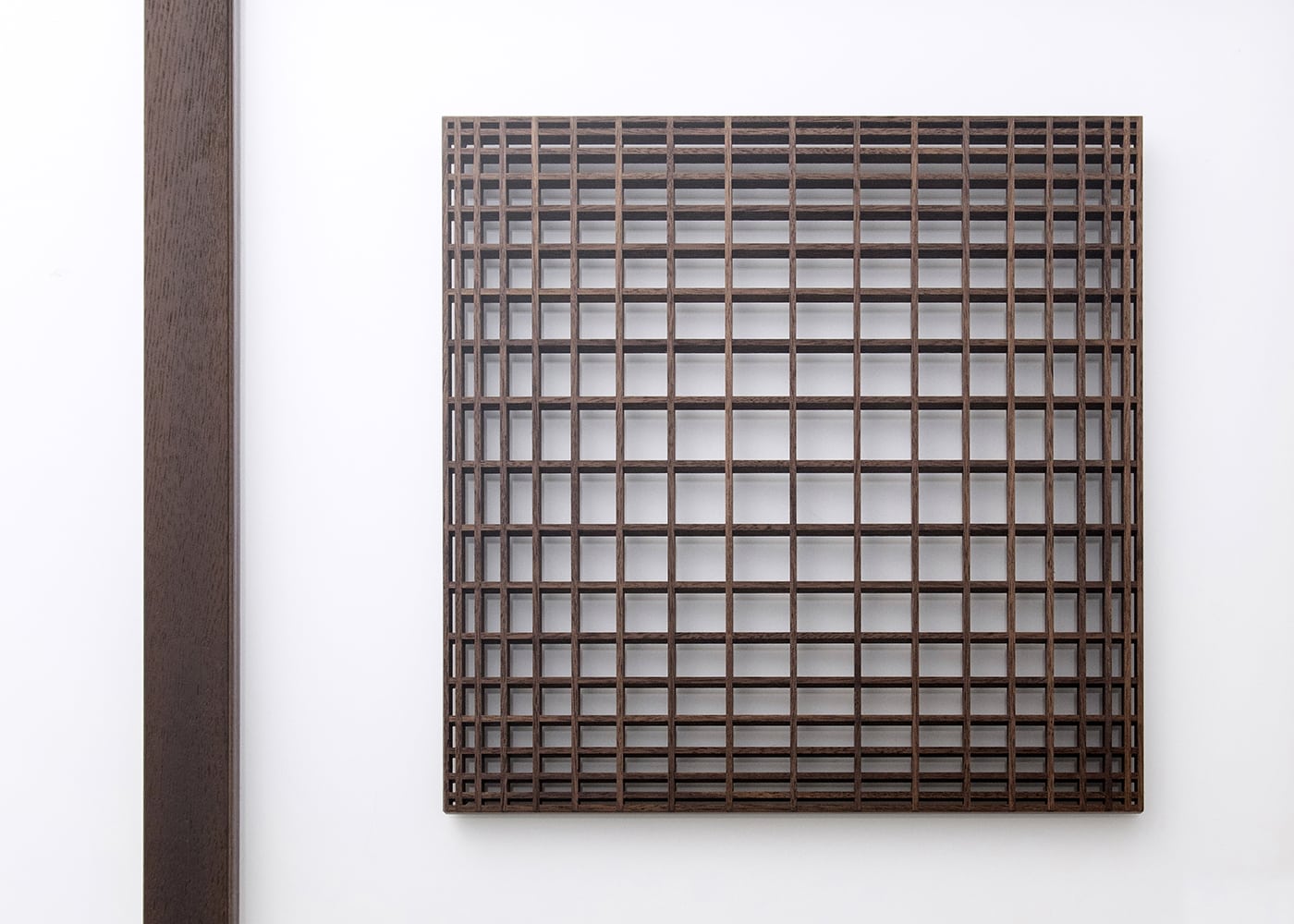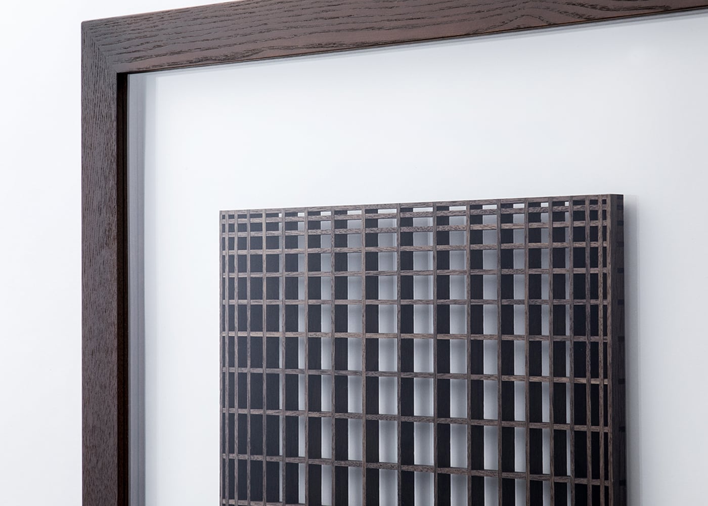900×900タイプは、ソファやローボードの上など広い壁面に1枚飾るだけで、お部屋にインパクトを与えます。格子の間隔の違いによって生まれる美しいグラデーションが楽しめます。(写真は900×900タイプ ブラウン)※販売終了