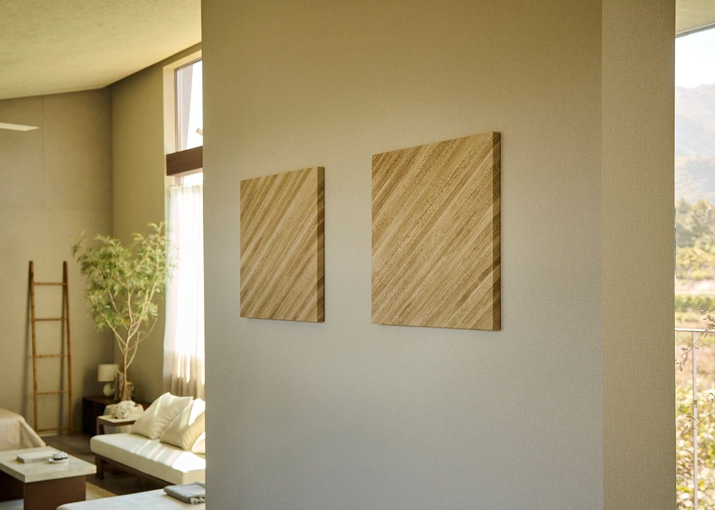 同じアートパネルでも飾る向きを変えるだけで、表情が変わります。(写真は500×500タイプを反時計回りに90度回転した状態)