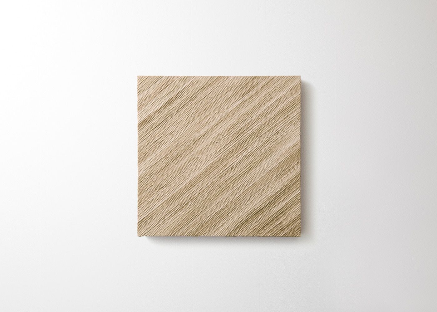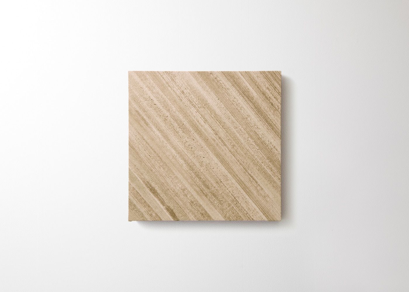 広大な大地が見せるやさしい色合いや地層の表情を、職人が塗り重ねた色と和紙の凹凸で描写したアートパネル (アースカラーズ)。a.flatが提案する
