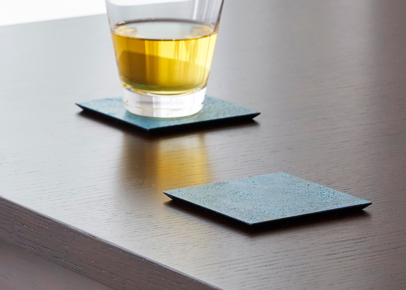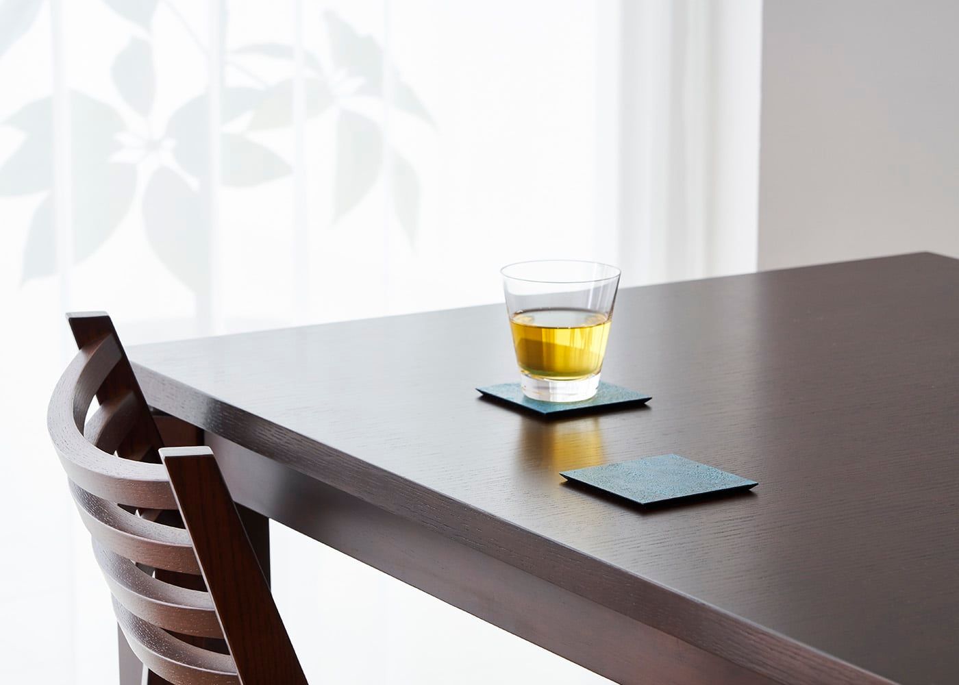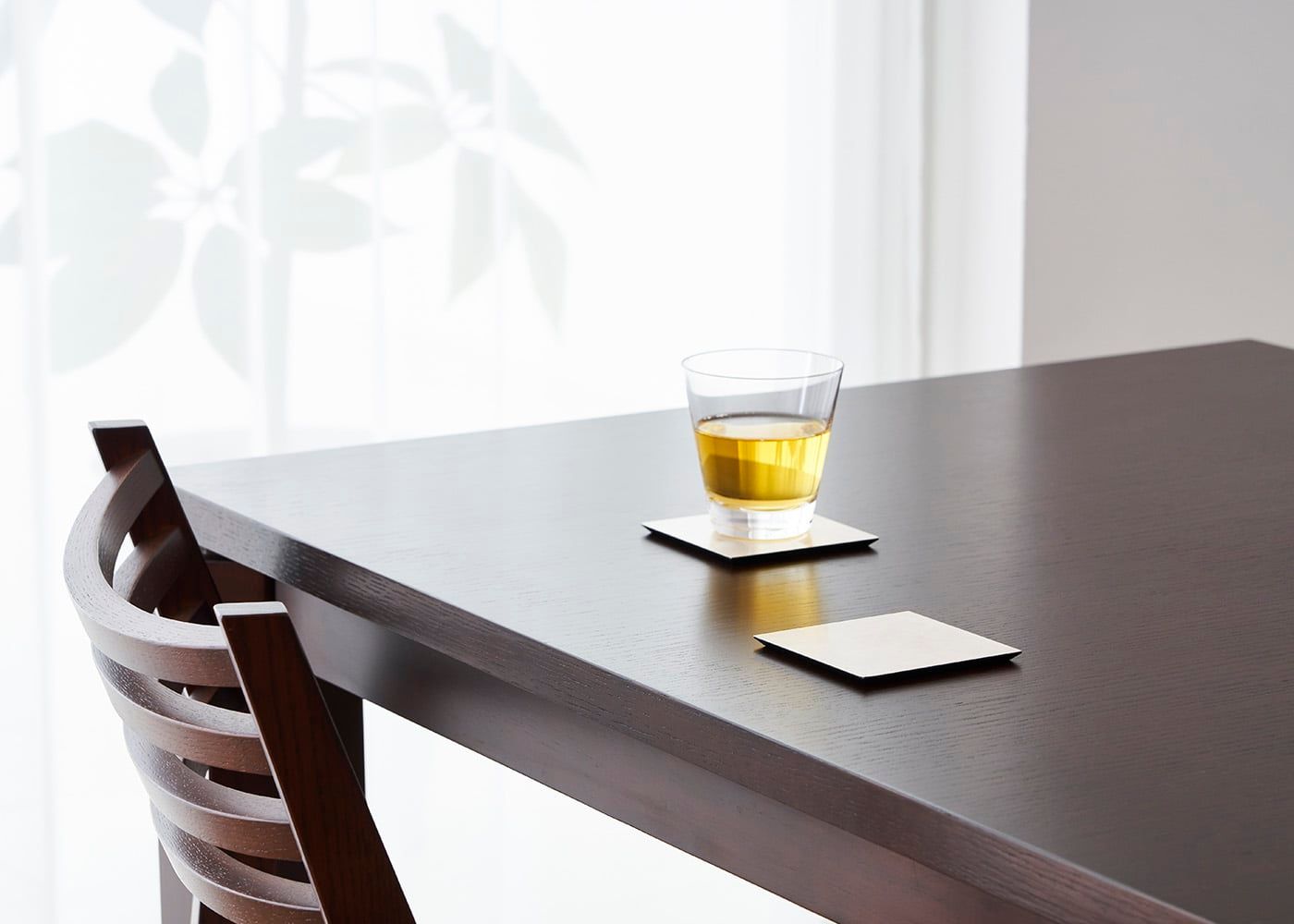テーブルの上に、コップとコースターを置いた場合。(写真は唐茶)