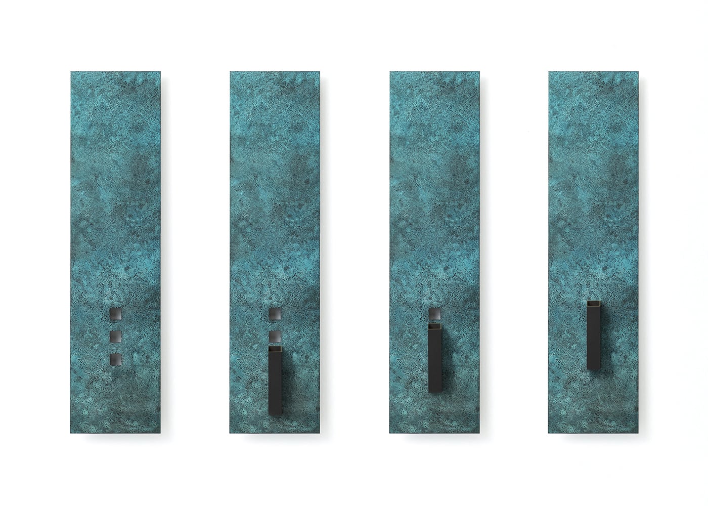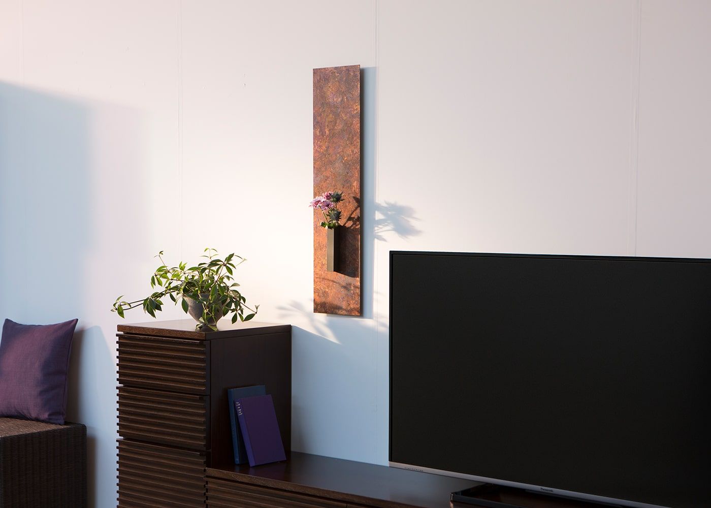 on the wallを飾るだけで、趣のある銅の発色がお部屋のアクセントとなり、凛とした佇まいを演出します。(写真は花緑青)