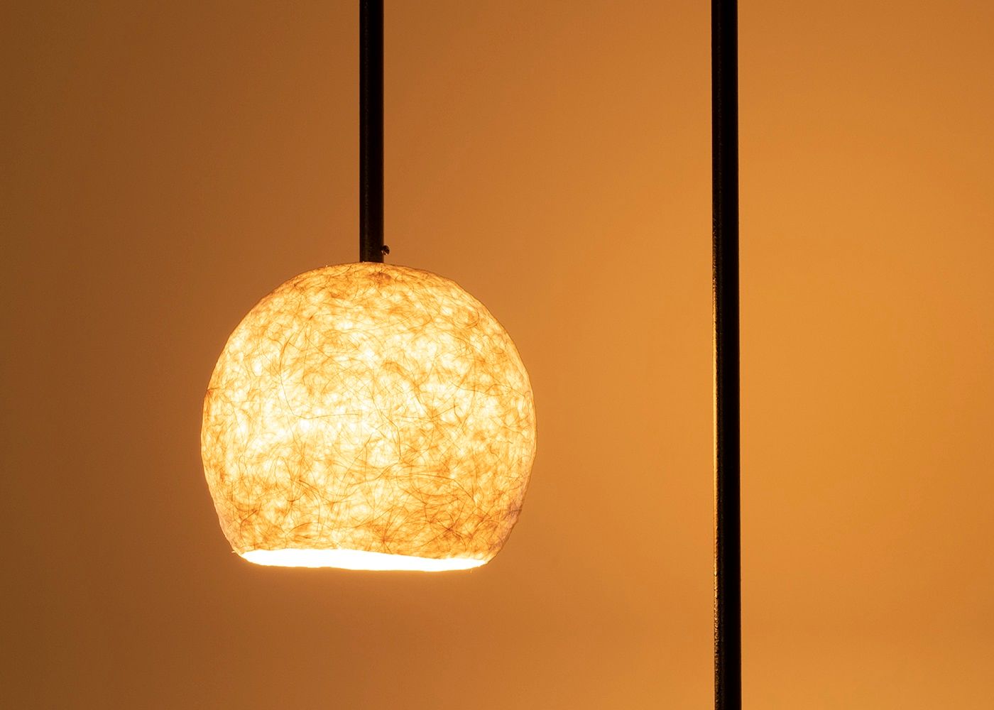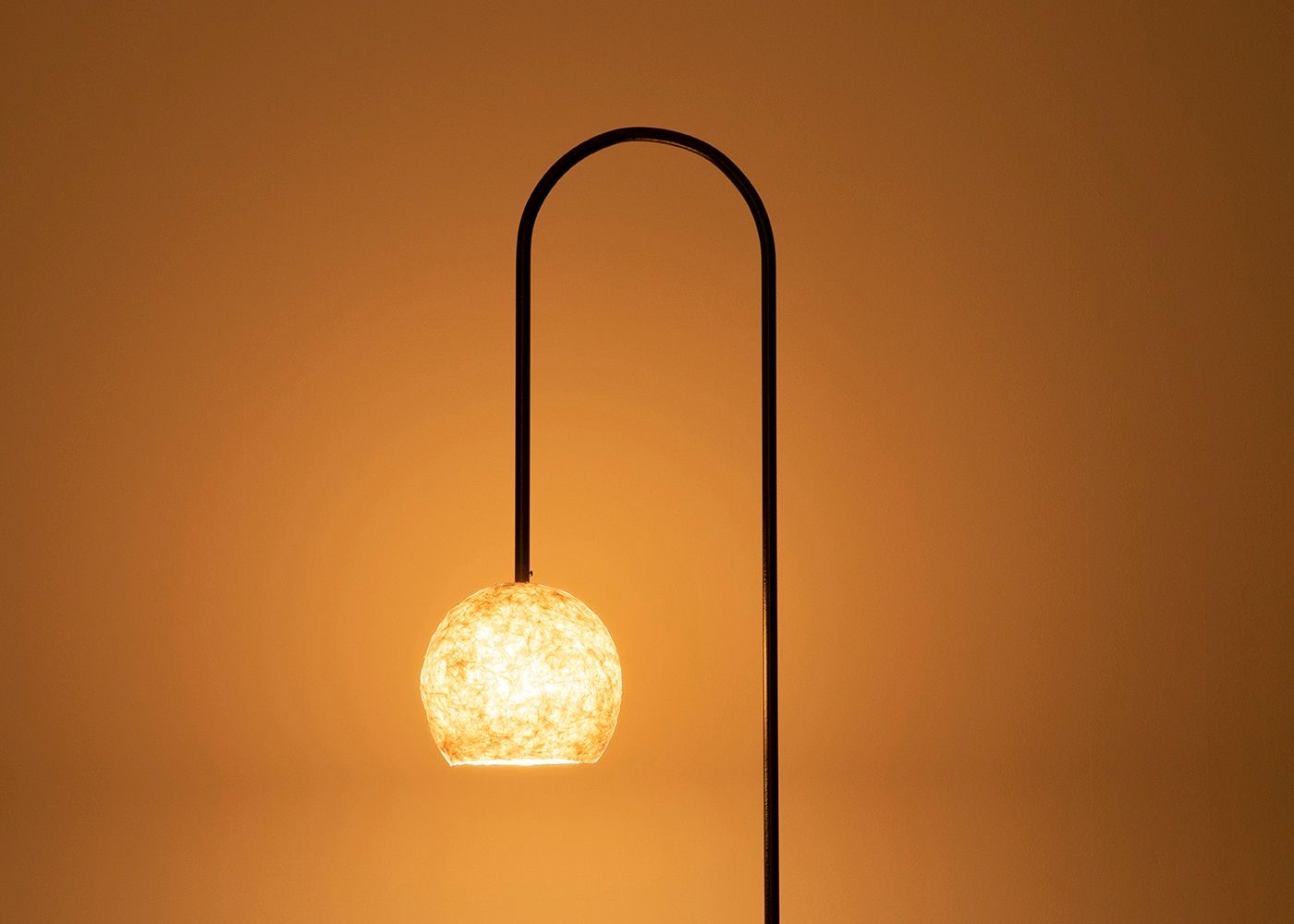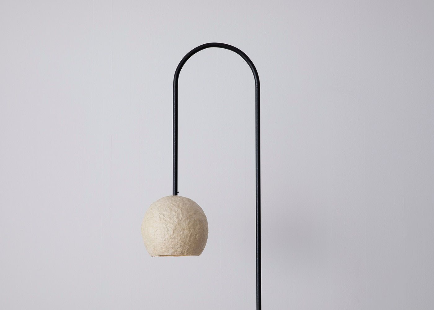 約2mの高さから生まれる、fuwariならではの弧を描いた個性的なデザインが人の心を惹きつけます。線の細さと柔らかな曲線がその高さを感じさせない抜け感を生み出しています。(シェードの下までの高さは約1.4m。写真は電球OFF)