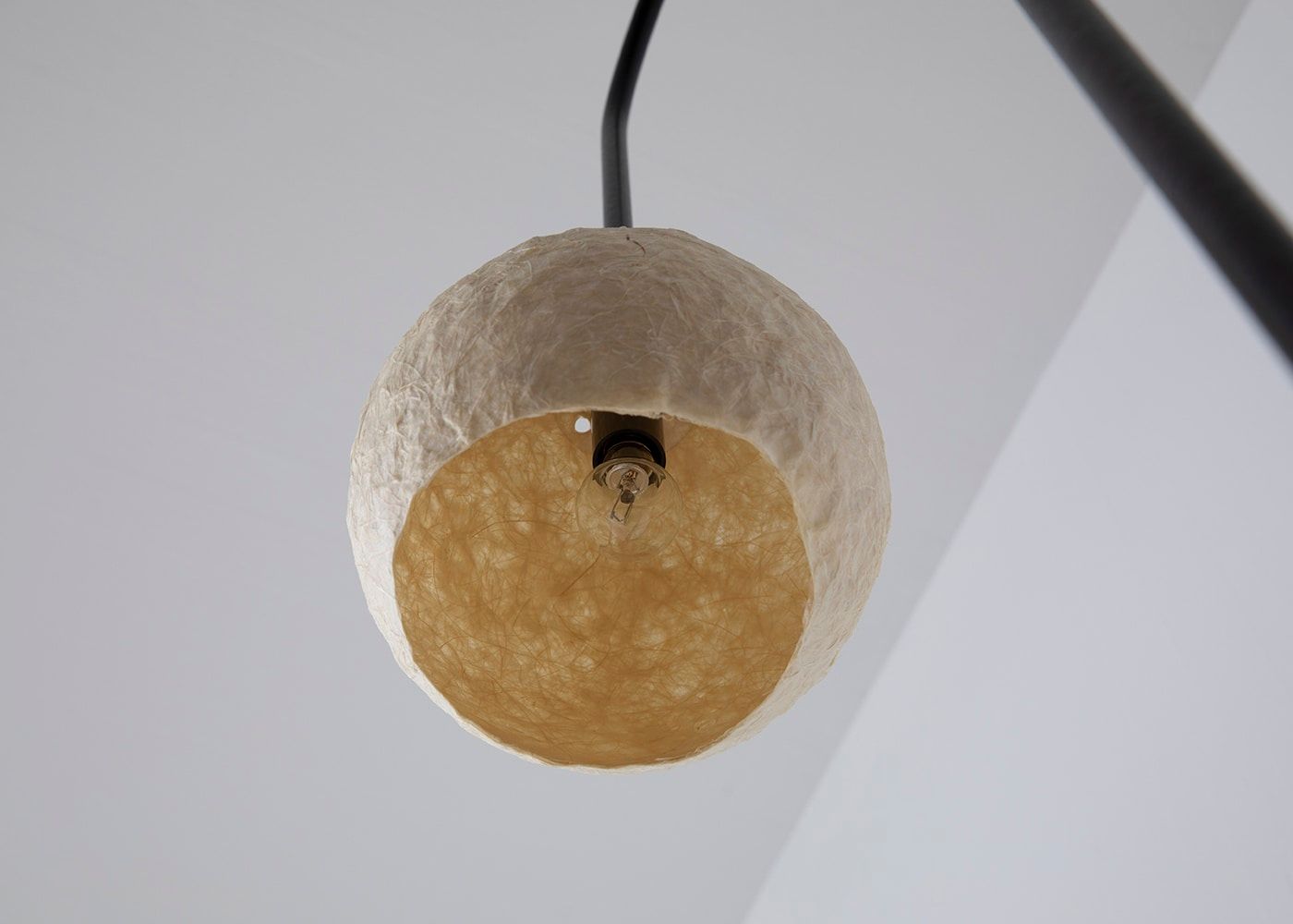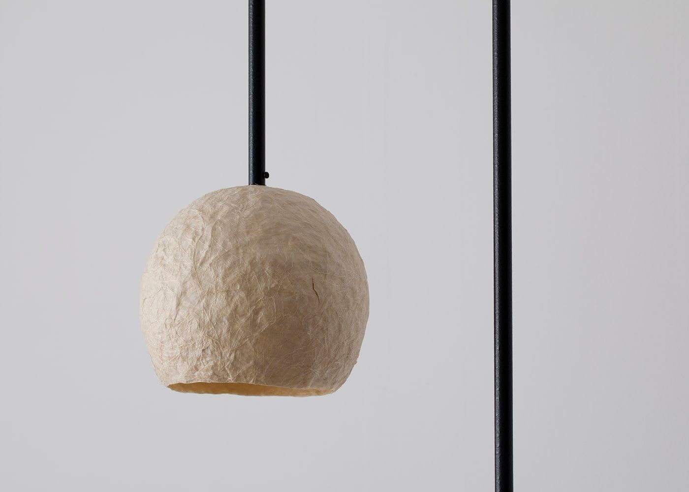 和紙でできた球体の下をまっすぐ切り取ったような潔いシェード形状。