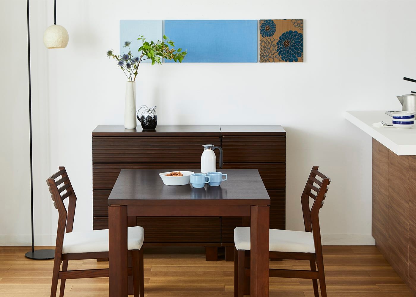 チェアが並ぶ中に、縦長のfuwari fsi-1を配置することで縦のアクセントが生まれます。