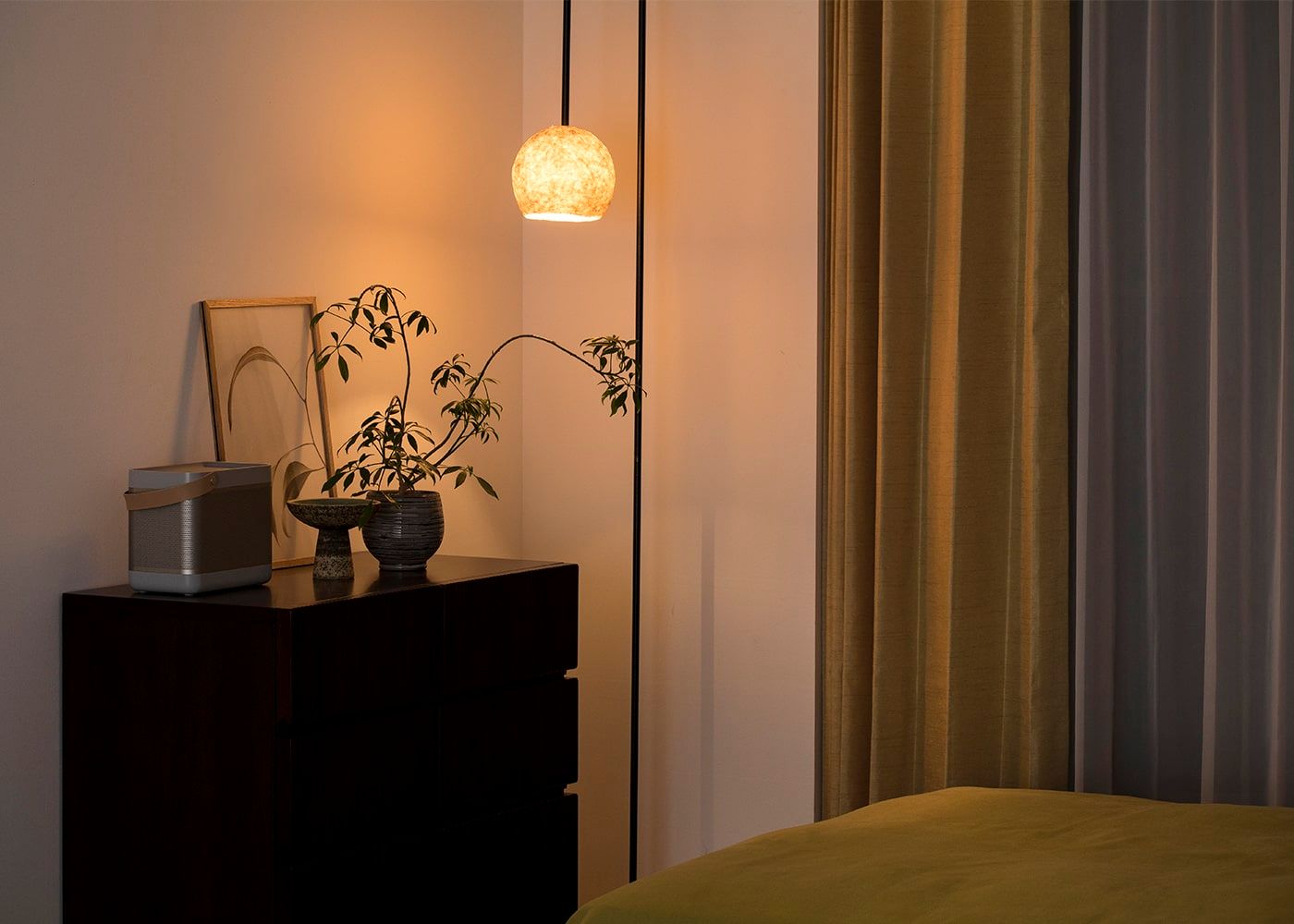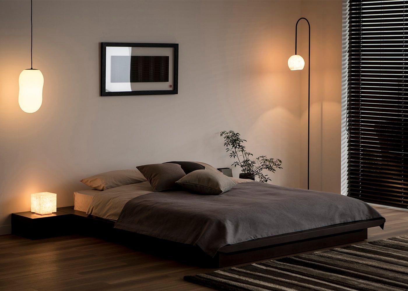 ペンダントライトの灯りと組み合わせることで奥行き感や陰影が生まれ、寝室を癒しの空間に変えてくれます。暖色系の灯りのリラックス効果により、あなたを快眠へと誘います。