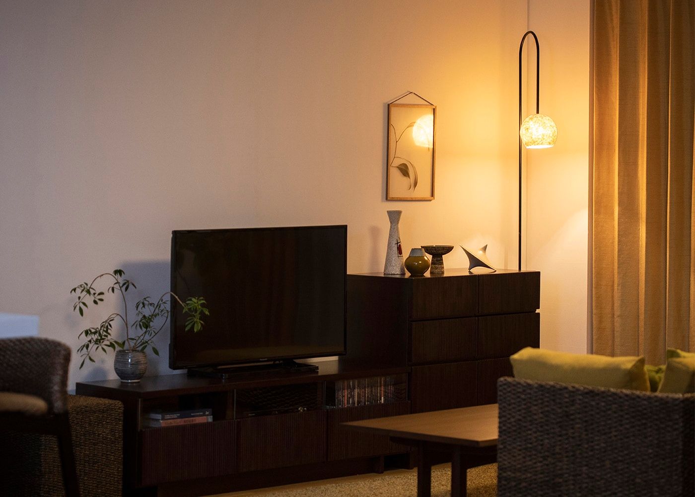 fuwari fsi-1はリビングなどの広い空間に一つ置くだけで、フォーカルポイントを簡単に作れます。照明がOFFの場合でも動きのある照明の形が、空間のインテリア性をアップしてくれるでしょう。