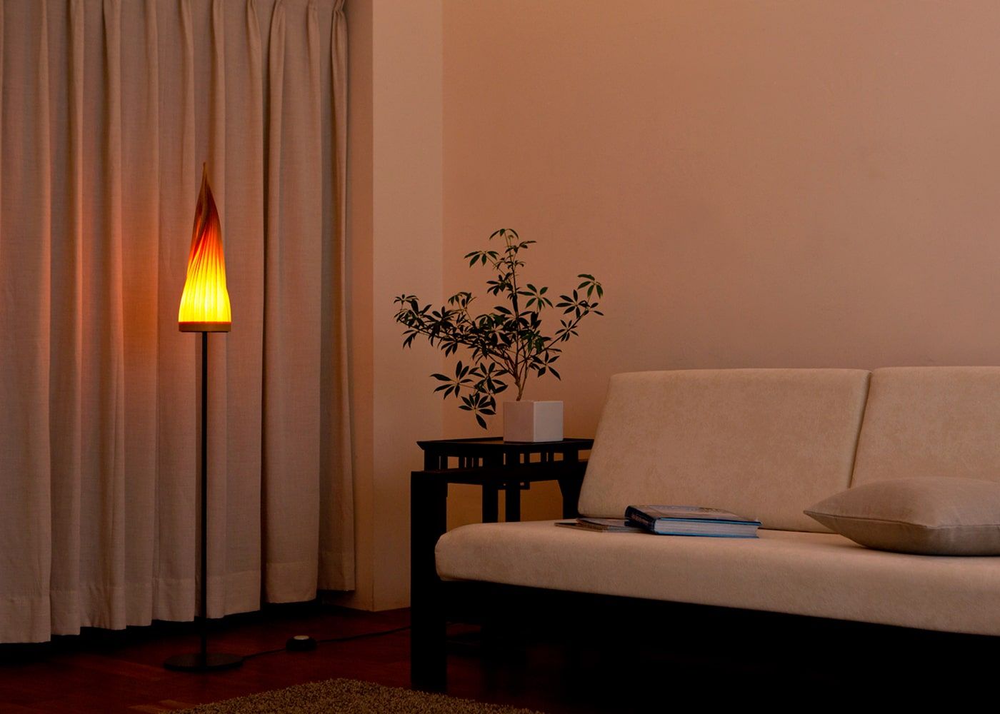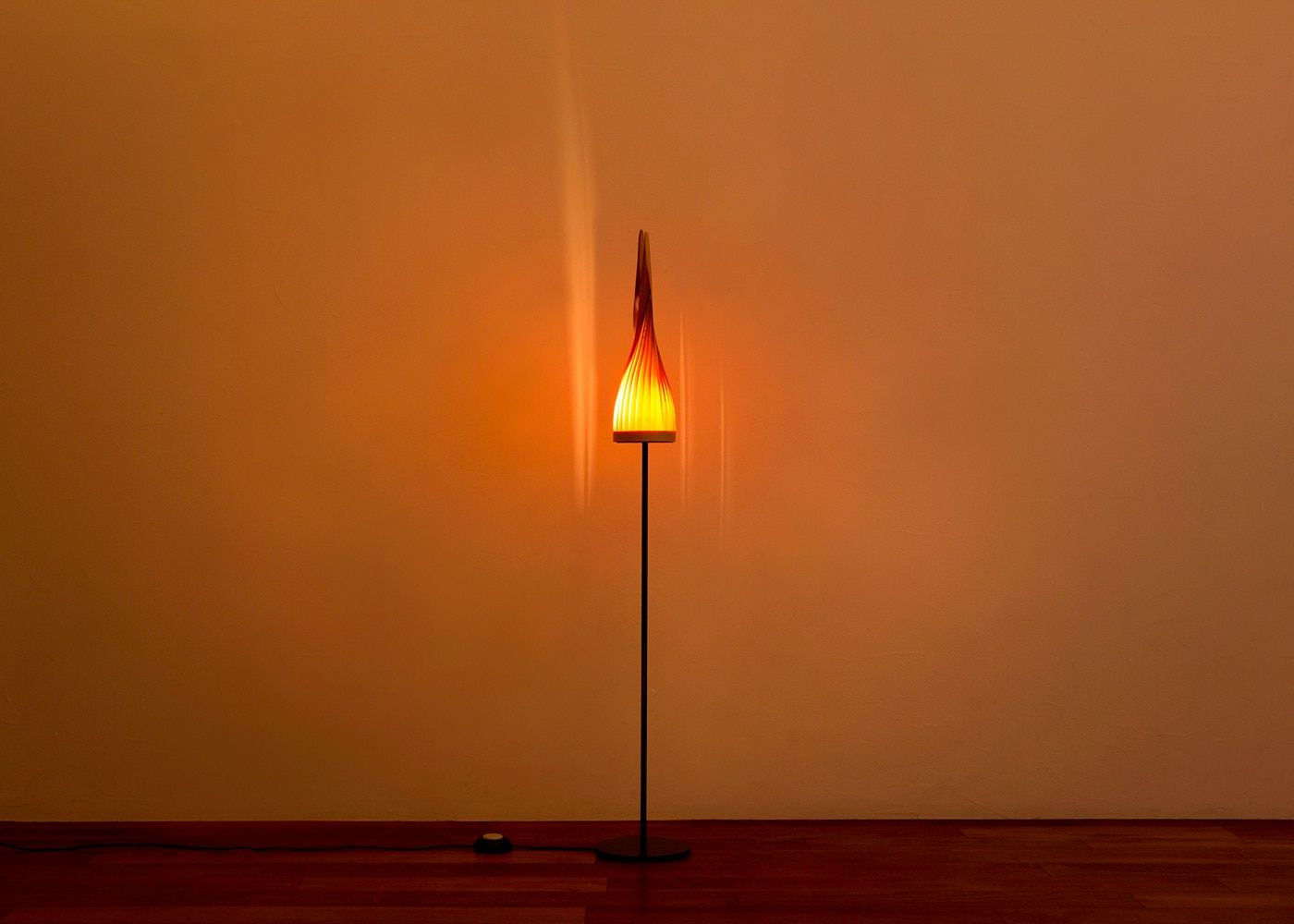 上下で灯りの色が変化する姿はまるで炎のように、明るくお部屋を照らします。シェードからこぼれ落ちて、壁に映る光のグラデーションもお楽しみ下さい。