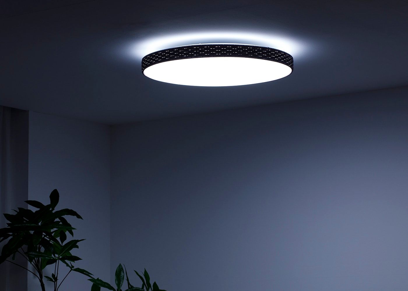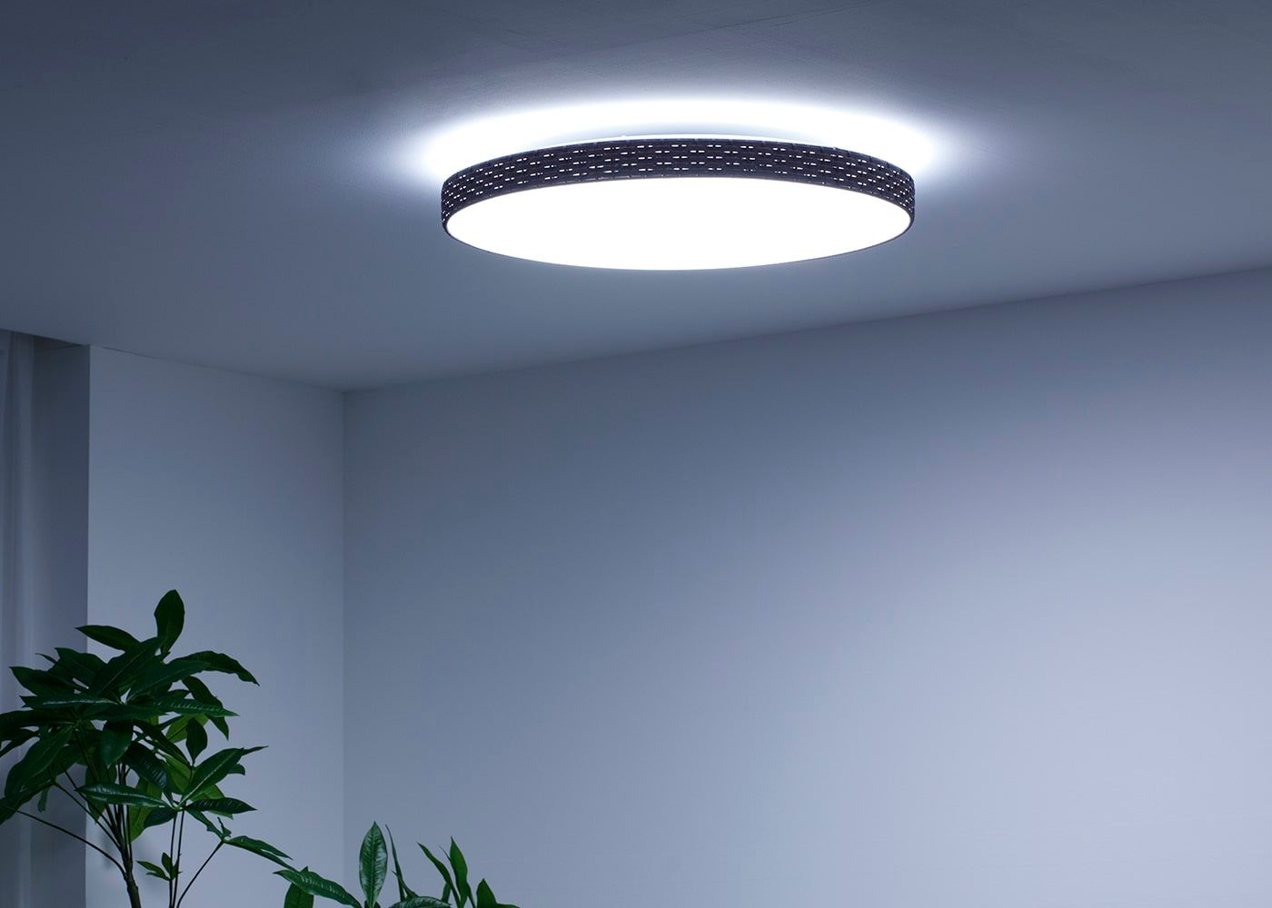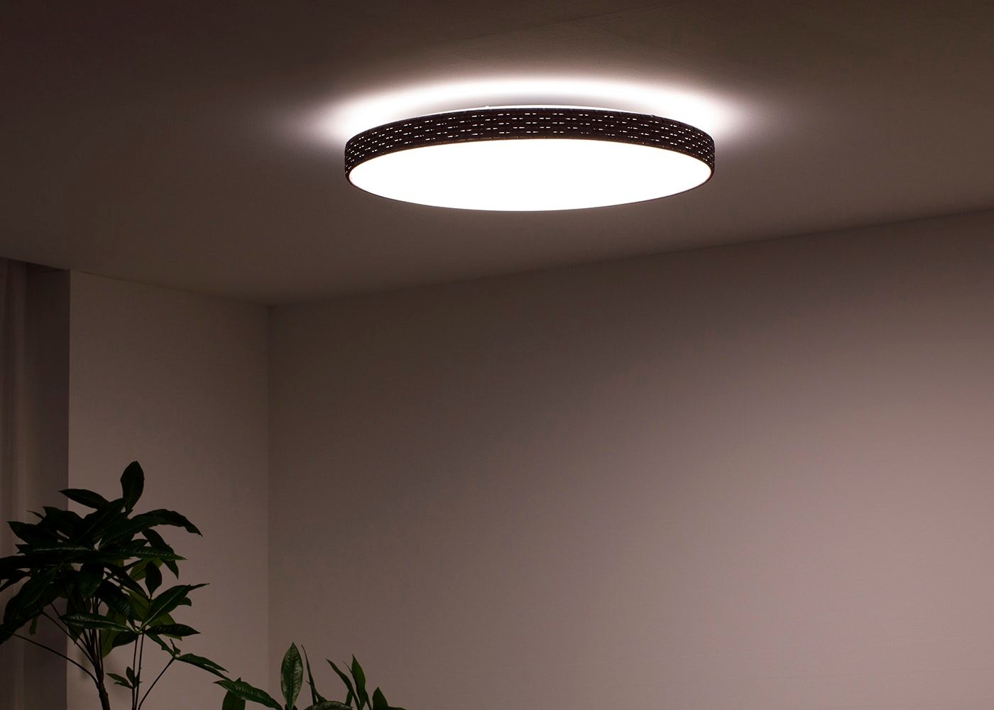 ナチュラルは天井や壁との色の差を感じにくいため、空間をより広くすっきりと見せてくれます。(写真は12畳用 ナチュラル。電球色 明るさ100%)