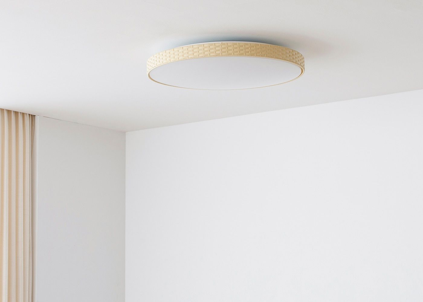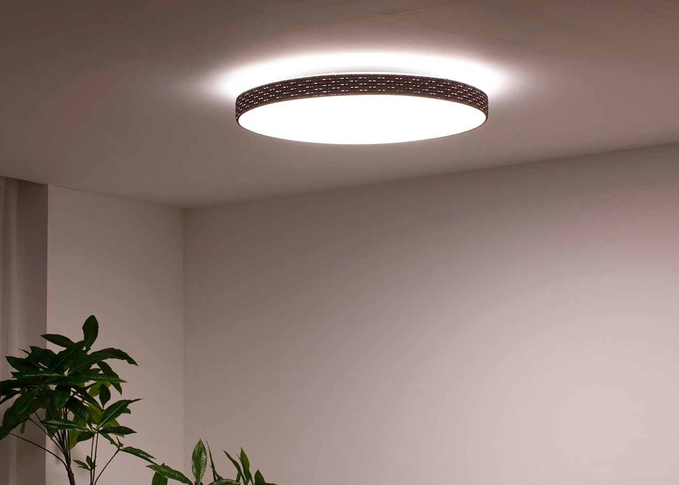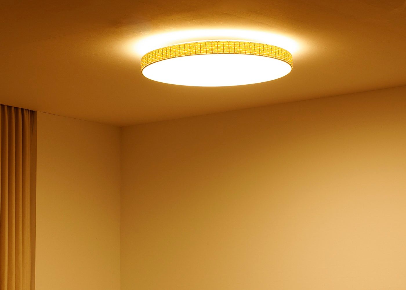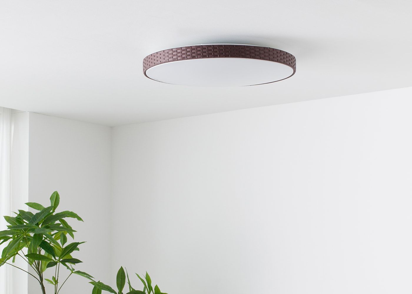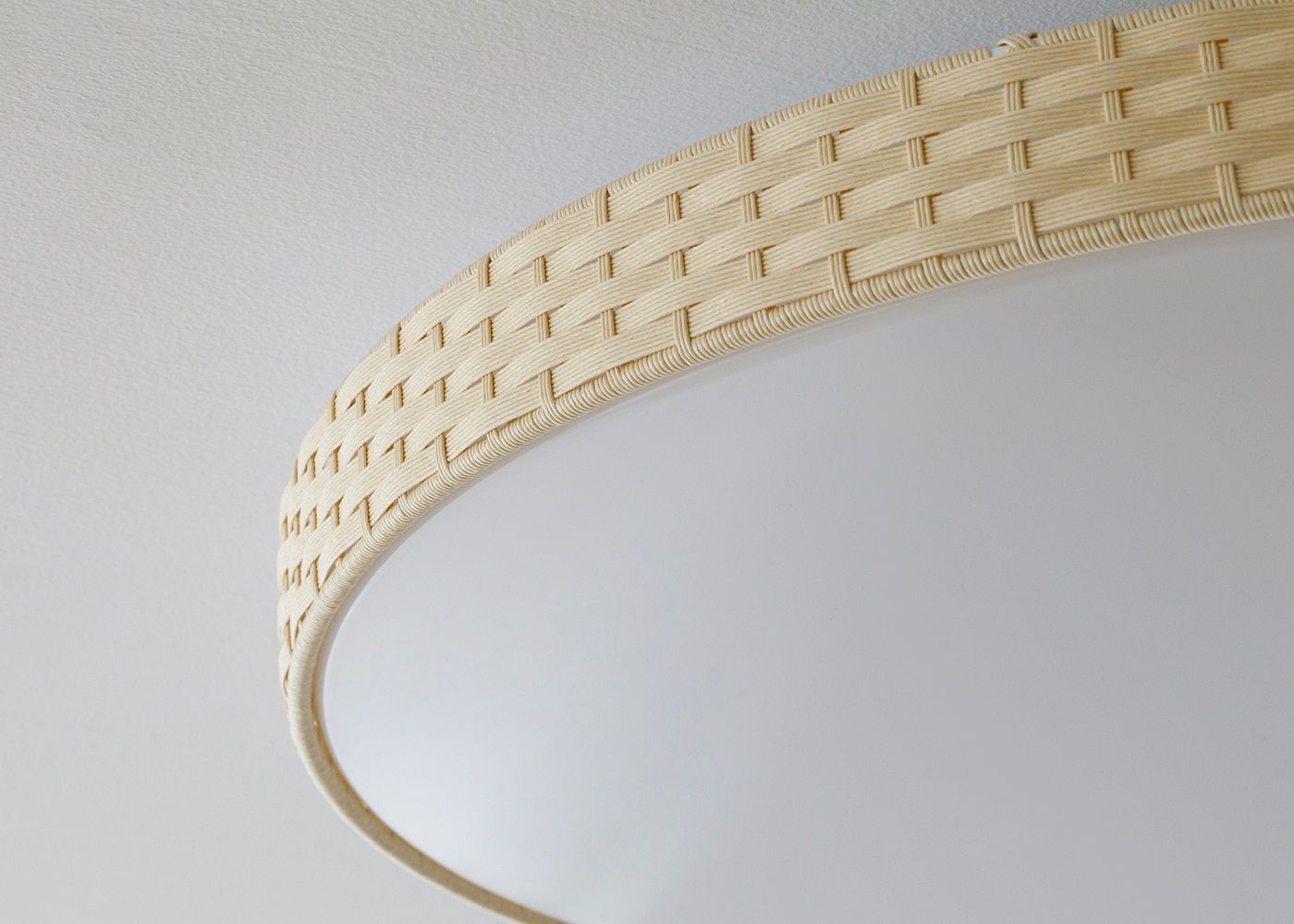 ペーパーコードの繊細な編み目がどこか人の手の温もりを感じさせる、コード・LEDシーリングライト。高機能な調光調色LEDを搭載しながらも、編み目から生まれる陰影や抜け感が味わえるシーリングライトです。