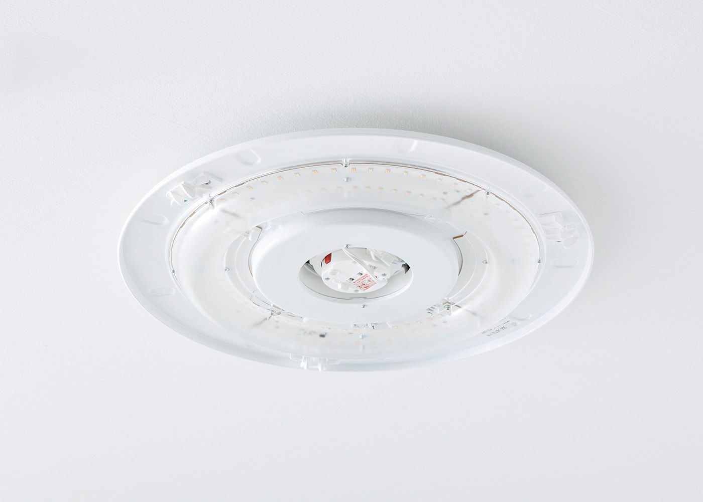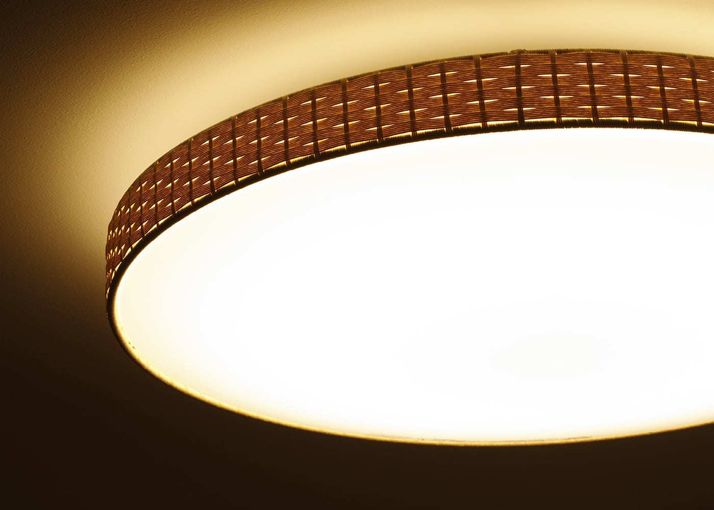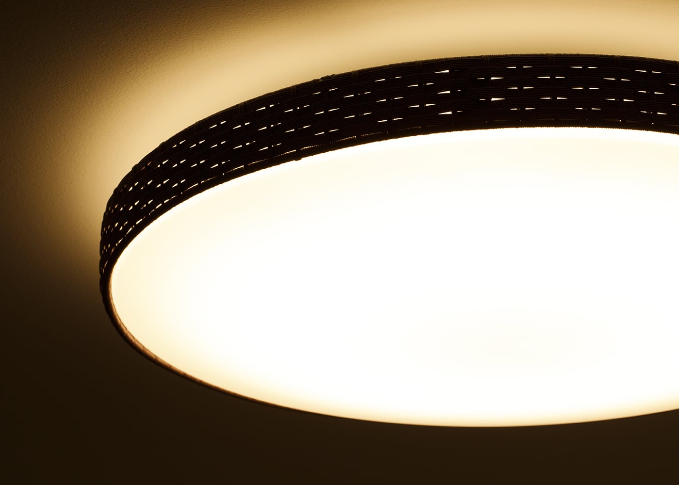 お財布にも環境にもやさしい調光調色機能付LEDを使用しています。わずかな消費電力で広い空間を明るく照らすシーリングライトは、お部屋の主照明としておすすめです。