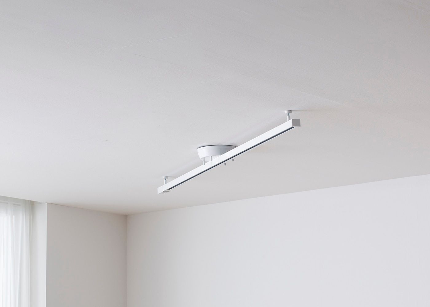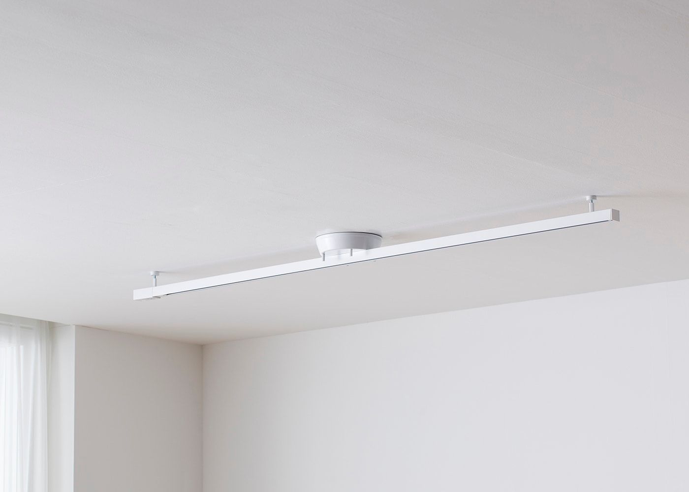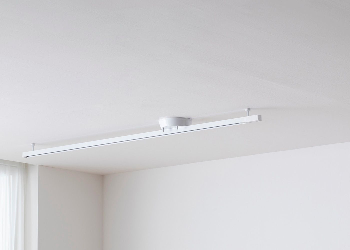 天井や壁の色に合わせたホワイトのライティングレールは、空間に調和してお部屋がすっきりします。(写真は幅1600)