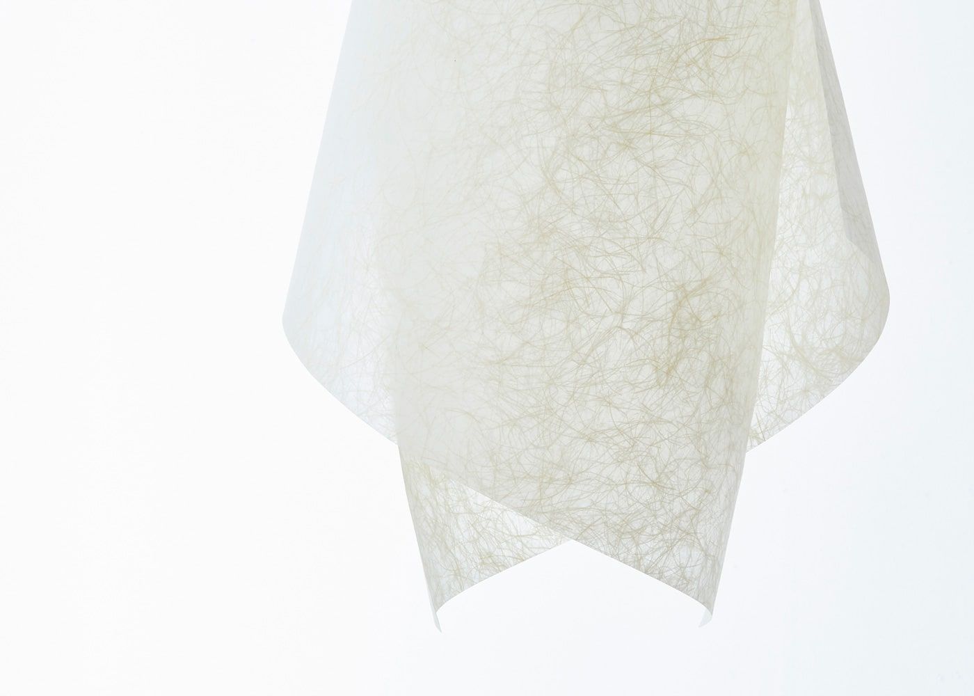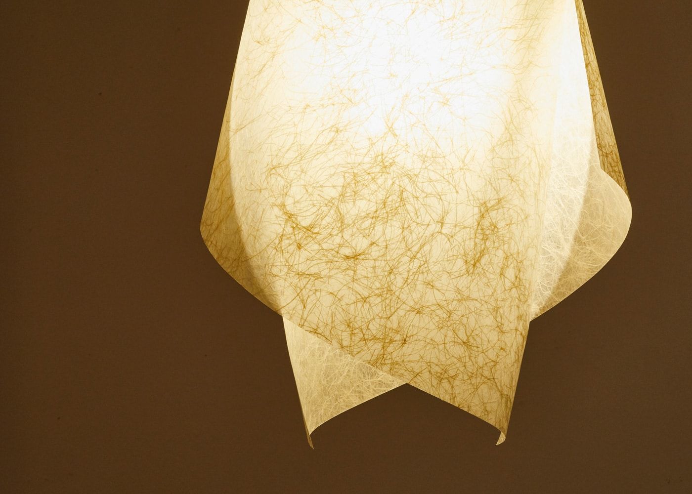 日中は外からの光を受けて、和紙の繊維や重なりの陰影がほんのりと浮かび、静かな美しさが際立ちます。(写真の向きは側面、照明OFF)