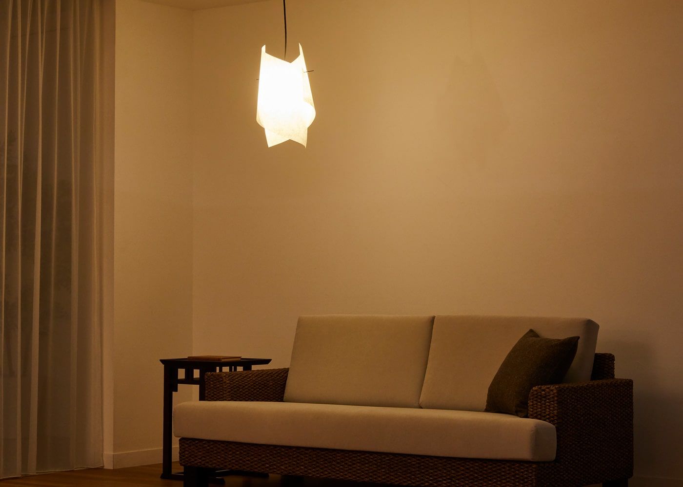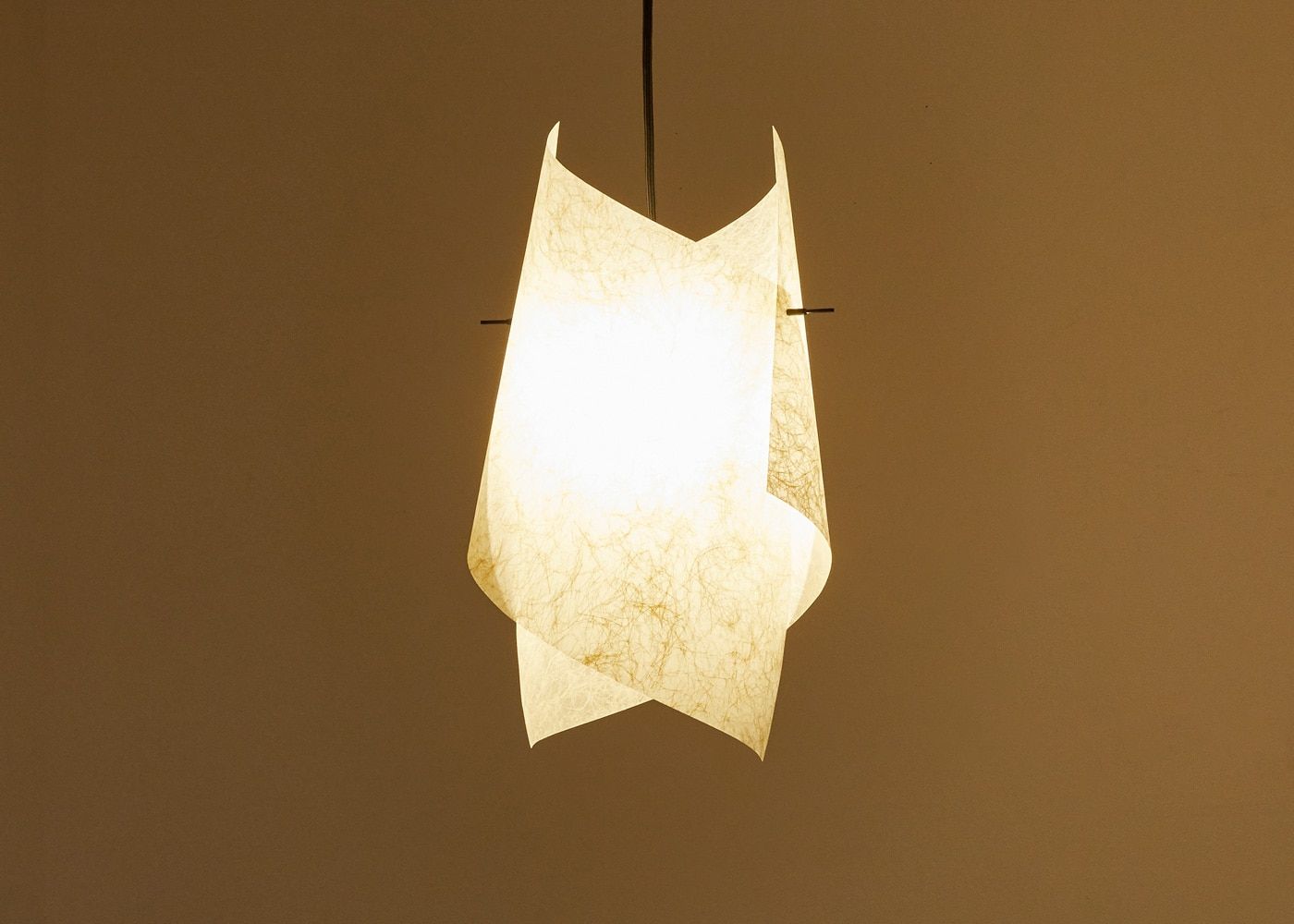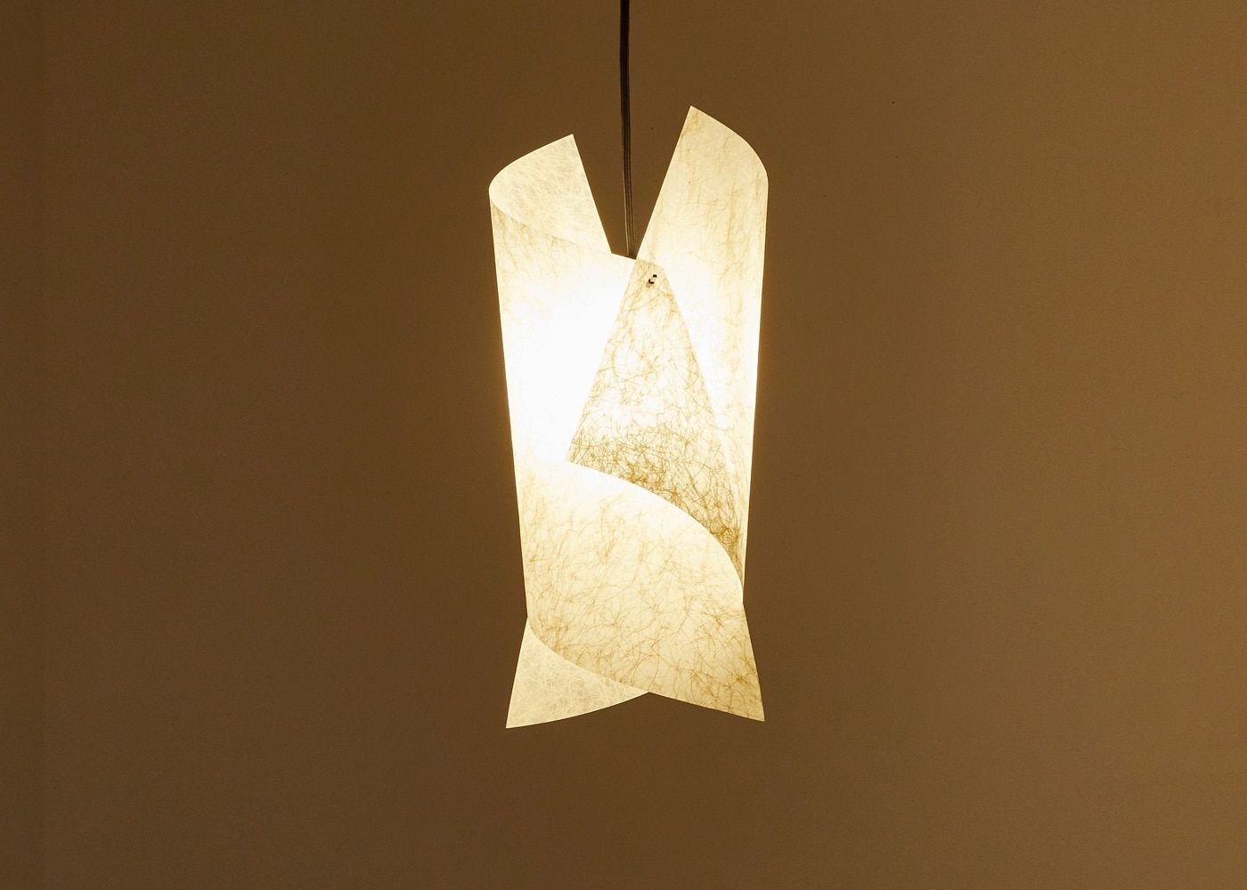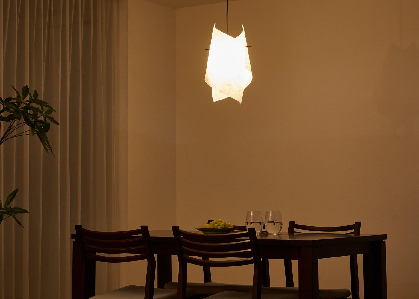 "ツバメ"のフォルムから着想を得たペンダントライト・tsubakuro(つばくろ)。空を舞うツバメのような軽快なフォルムは、素材感のあるワーロン紙を2枚組み合わせて表現しました。見る角度によっても異なる表情を見せるtubakuro p-1は、空間に軽やかなアクセントを与えてくれる魅力的な照明です。