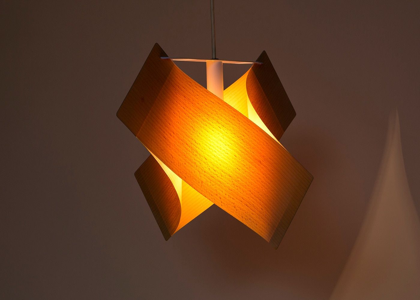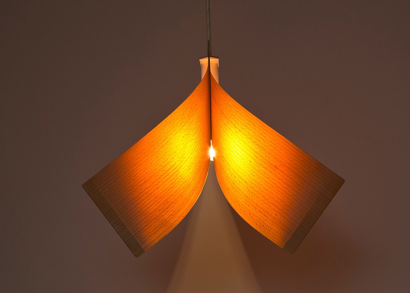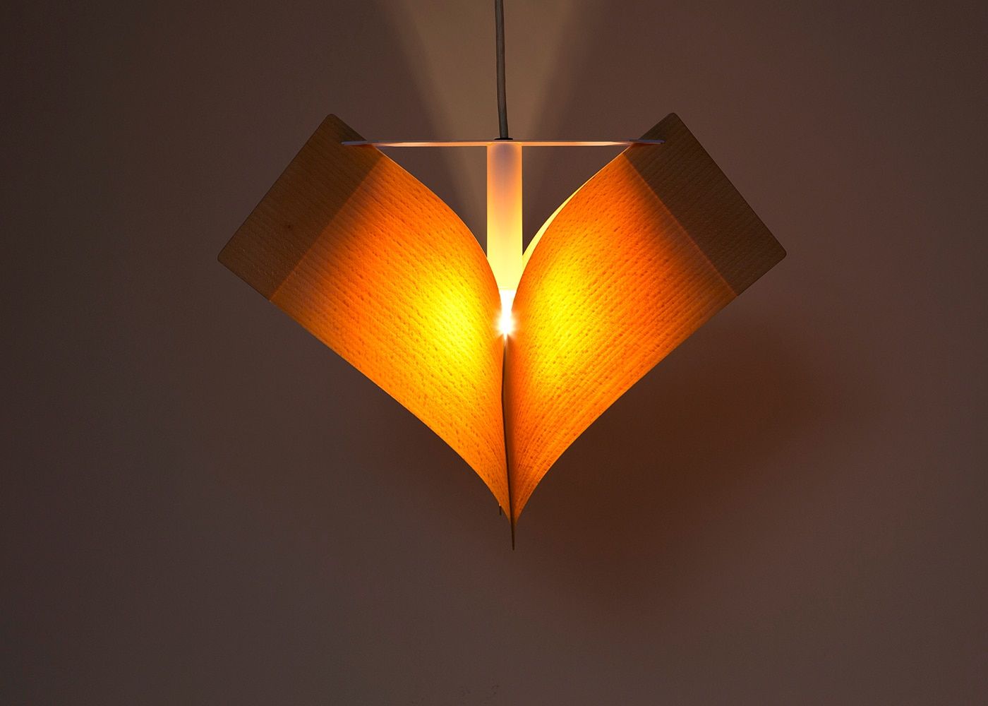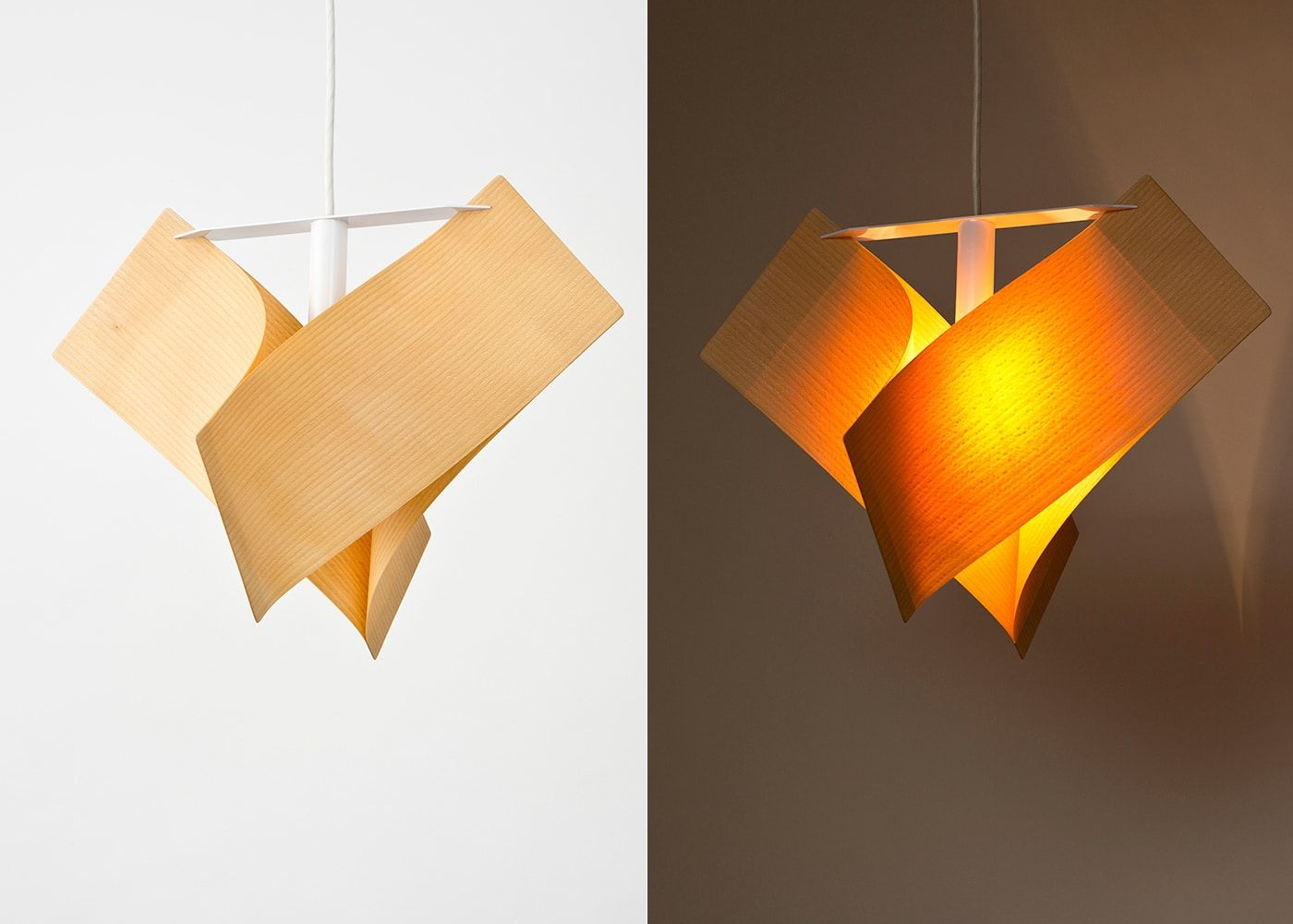 空間に幻想的な灯りのアクセントを与えてくれるkomorebi p-1。ブナ材から生まれるオレンジ色の優しい光が見る人を魅了します。