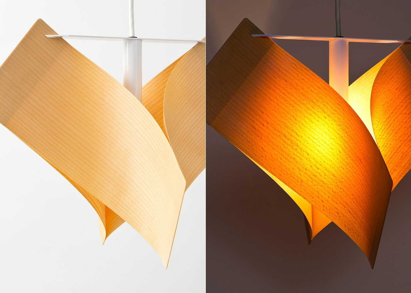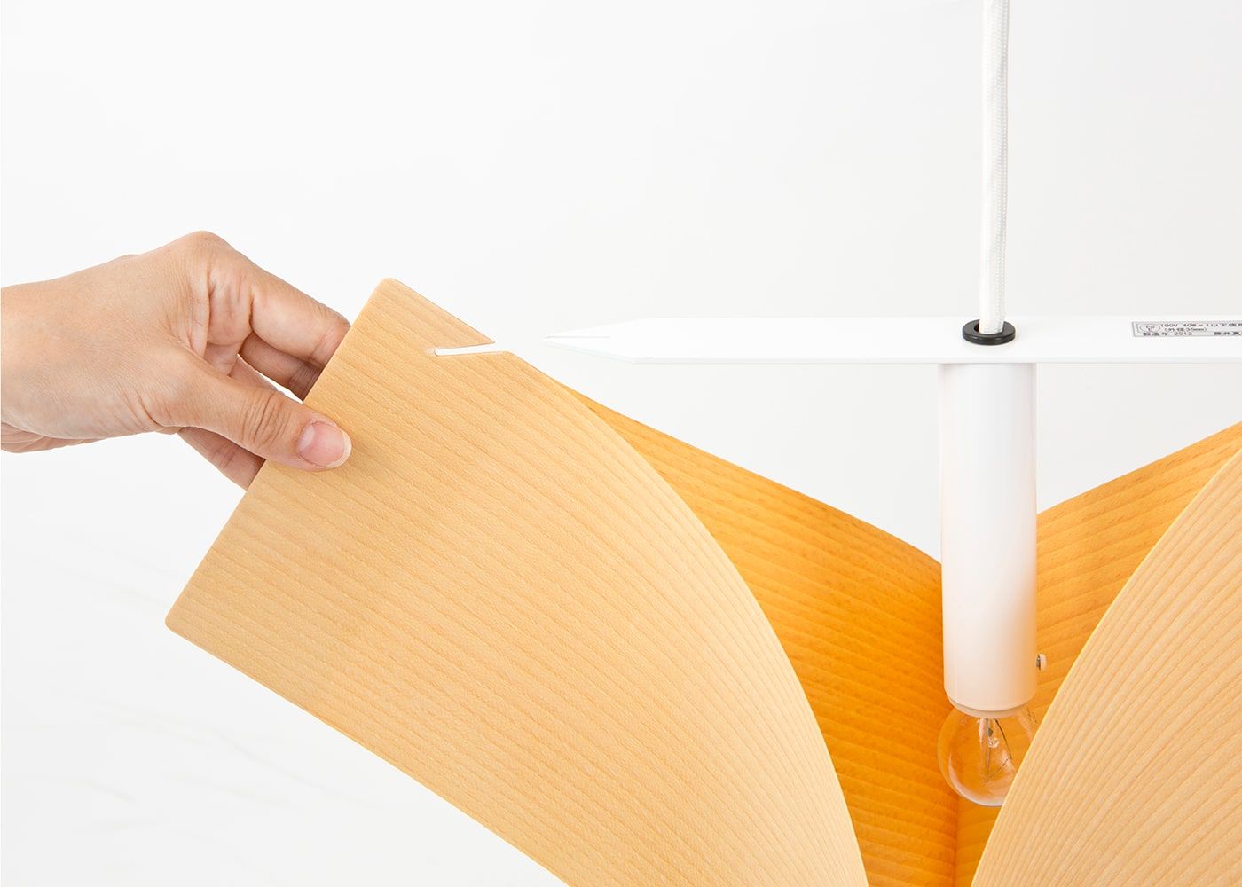 シェードには天然のブナ材をスライスし、丁寧に組み合わせています。仕上げは天然の素材感を際立たせるオイルフィニッシュになっています。