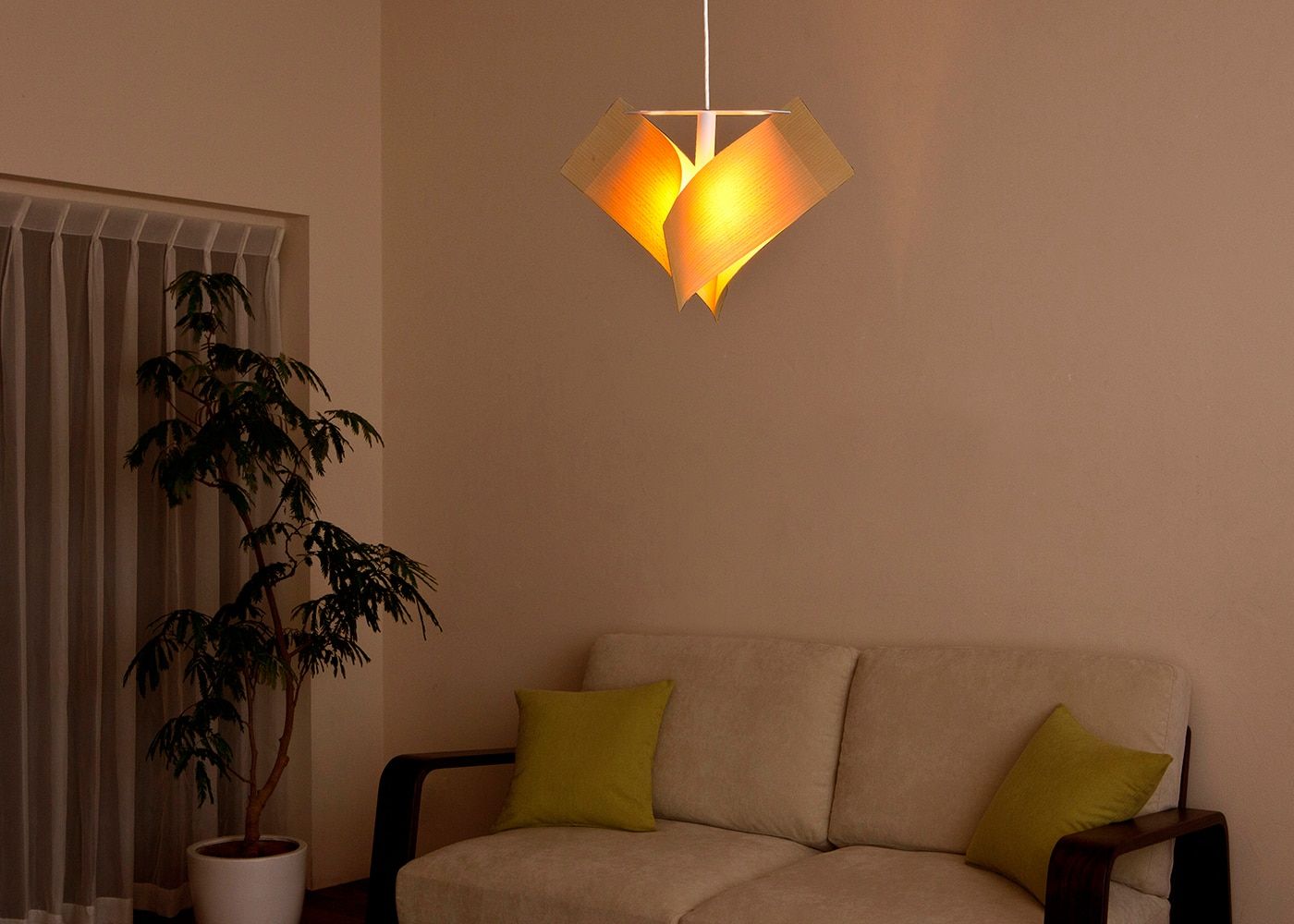 やさしい繊細な光なのでリラックスできる空間を演出します。リビングに吊るせば、光がやわらかく広がり、穏やかな時間を過ごせる居心地のよい雰囲気に。