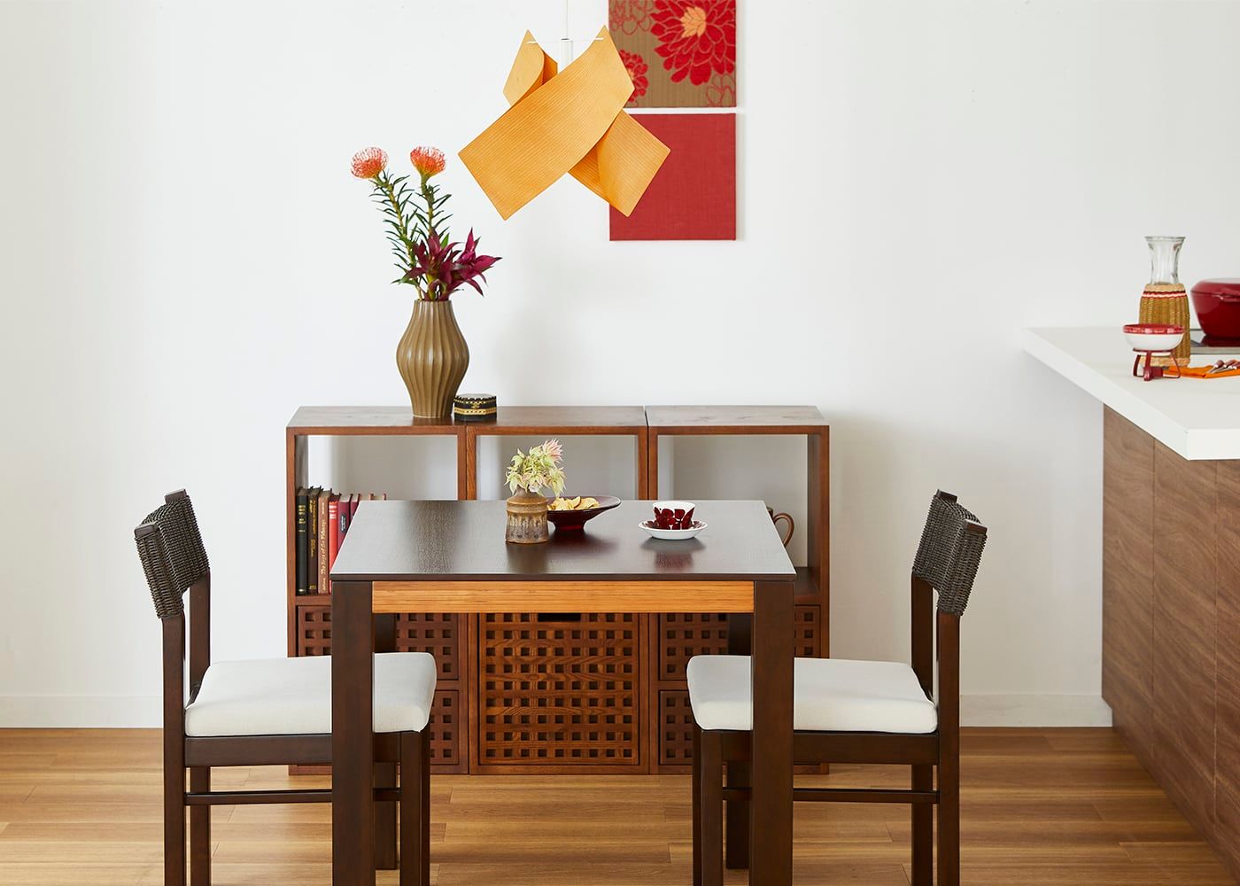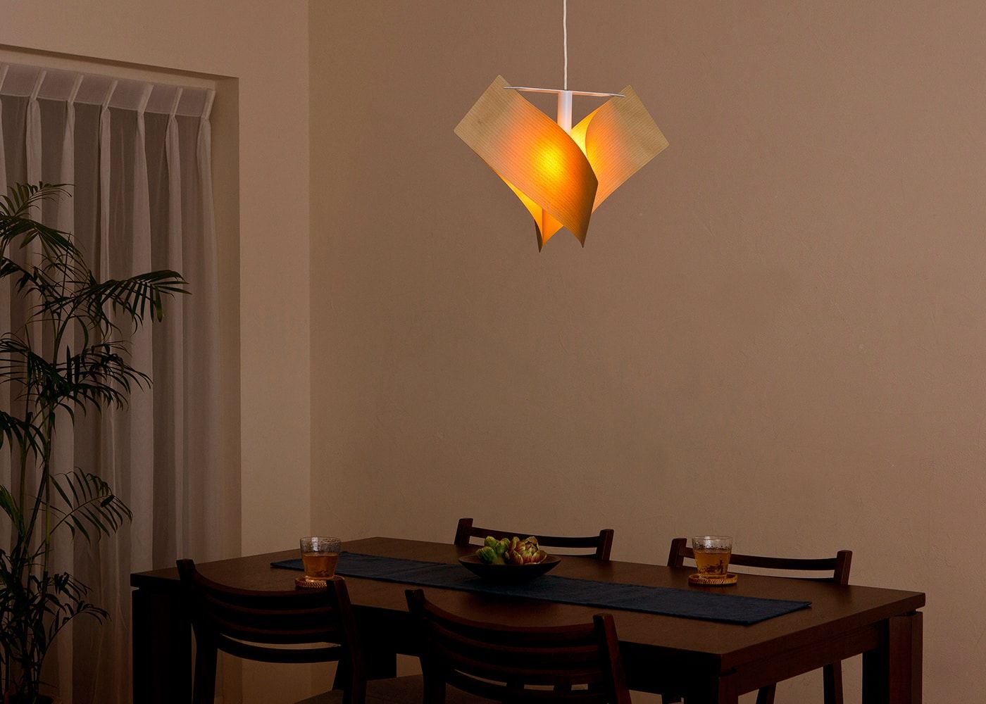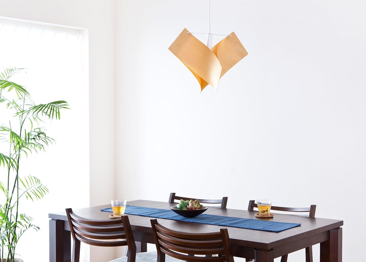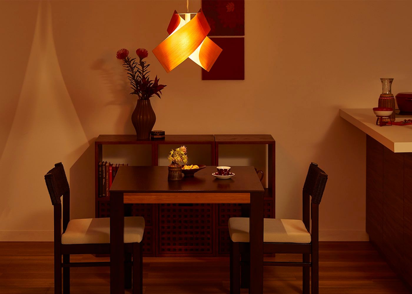 素材感とデザイン性の2点を併せ持ったkomorebi p-1をダイニング上に飾れば、ムーディなレストランのような空間を演出できます。