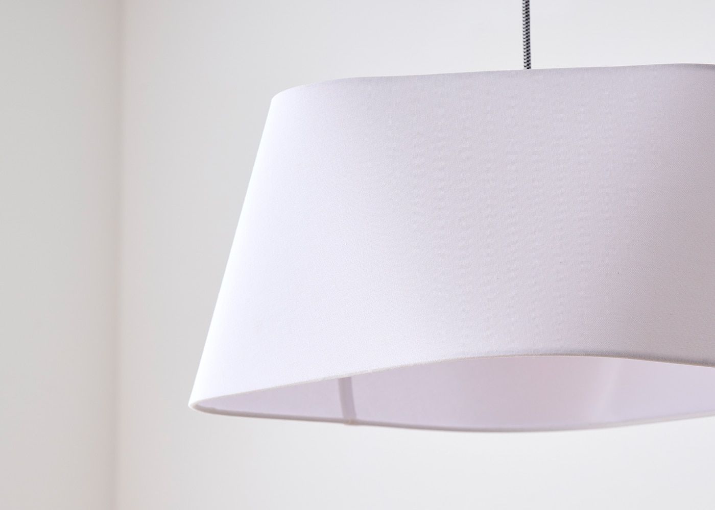 ホワイトのシェードは空間をほどよい明るさで照らします。同じ電球の明るさでもブラウンよりも明るくなるのため、空間に必要な明るさに応じて、カラーをお選びください。(写真はホワイト、電球ON)