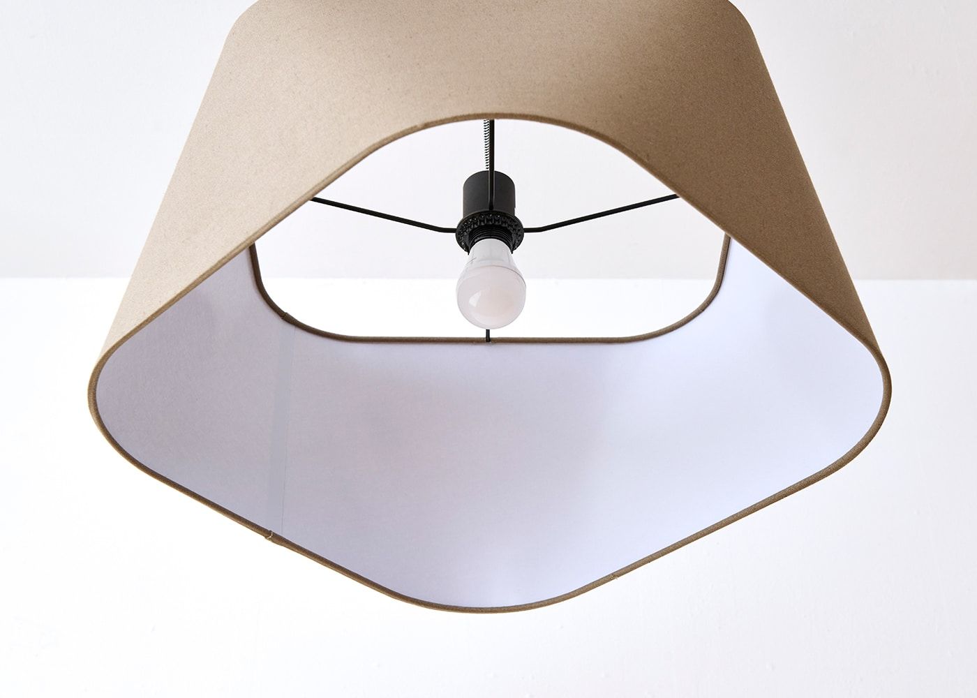 同じ正面から見ても角度を変えるだけで、シェードのフォルムが台形から四角形に見える不思議なデザインです。