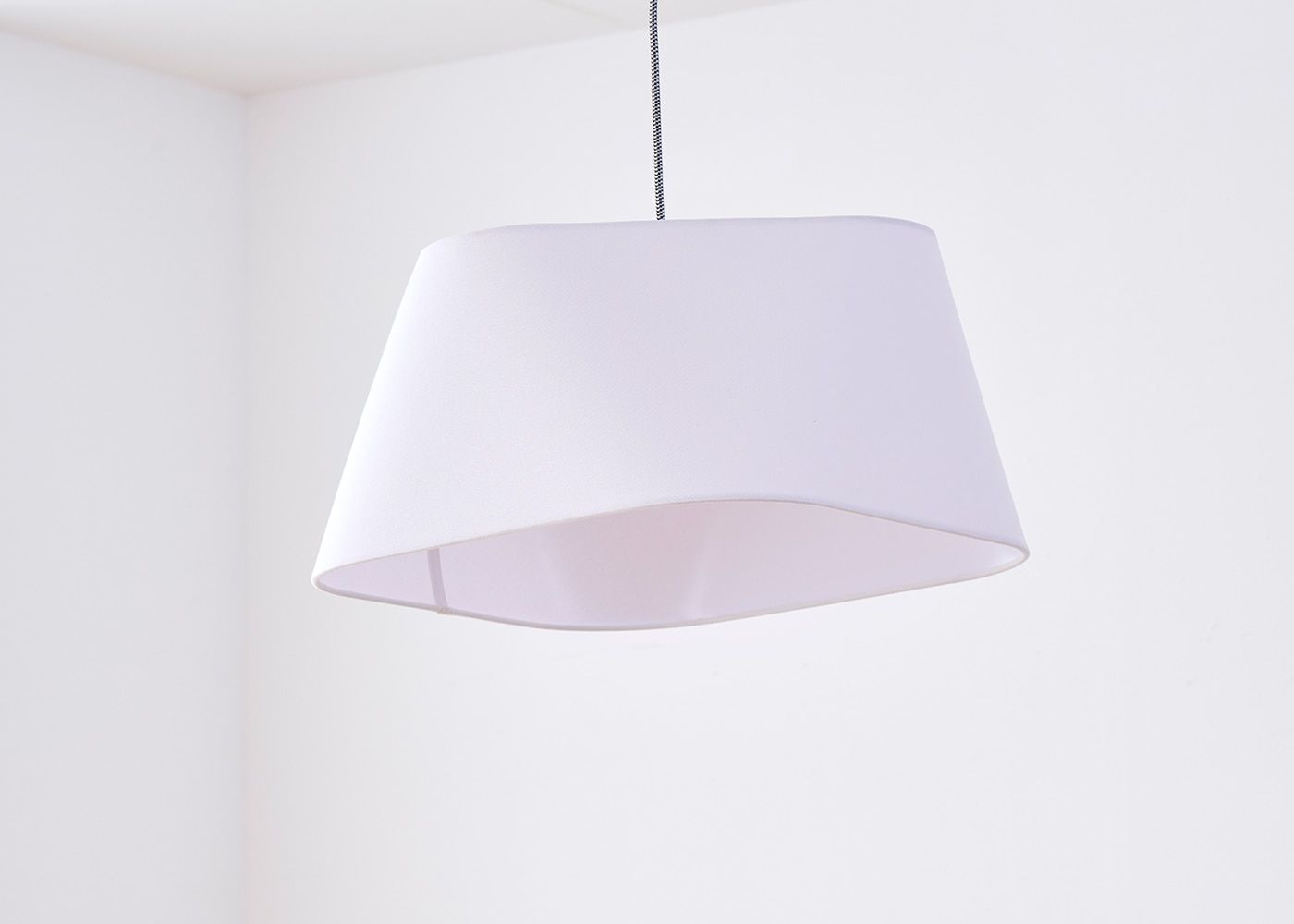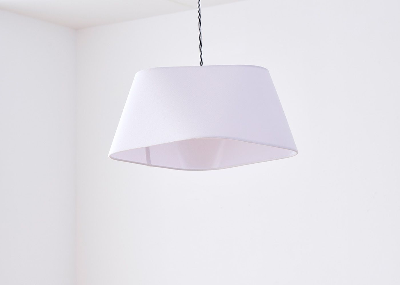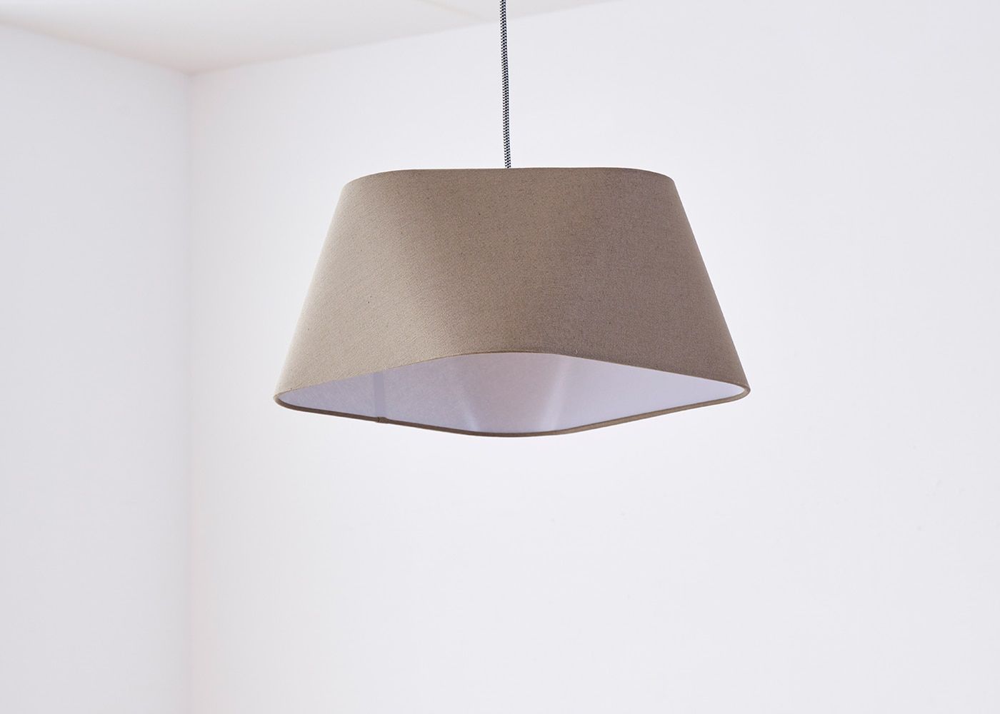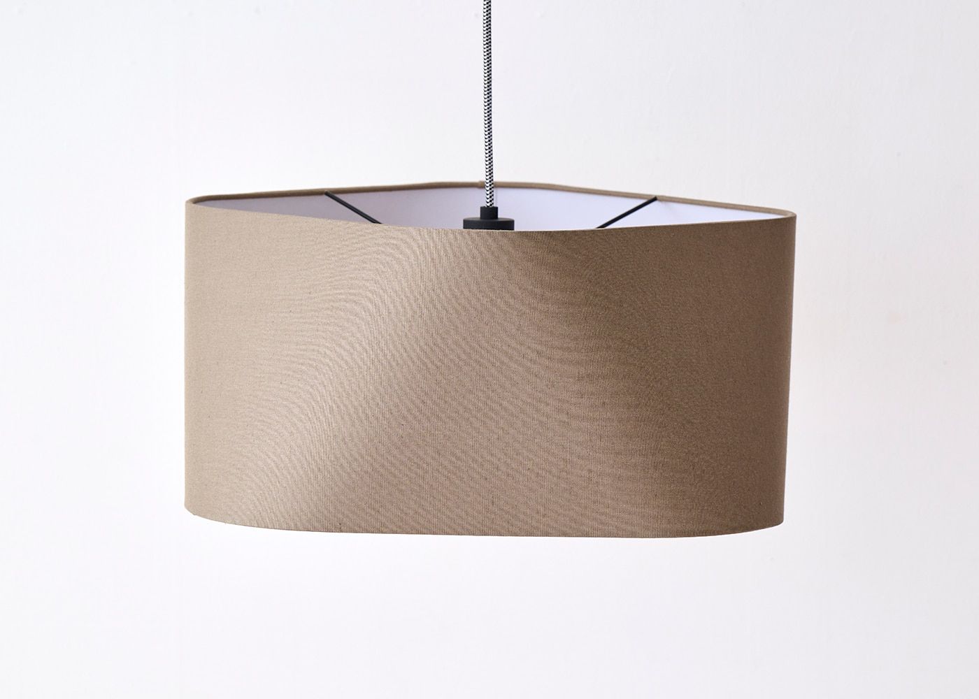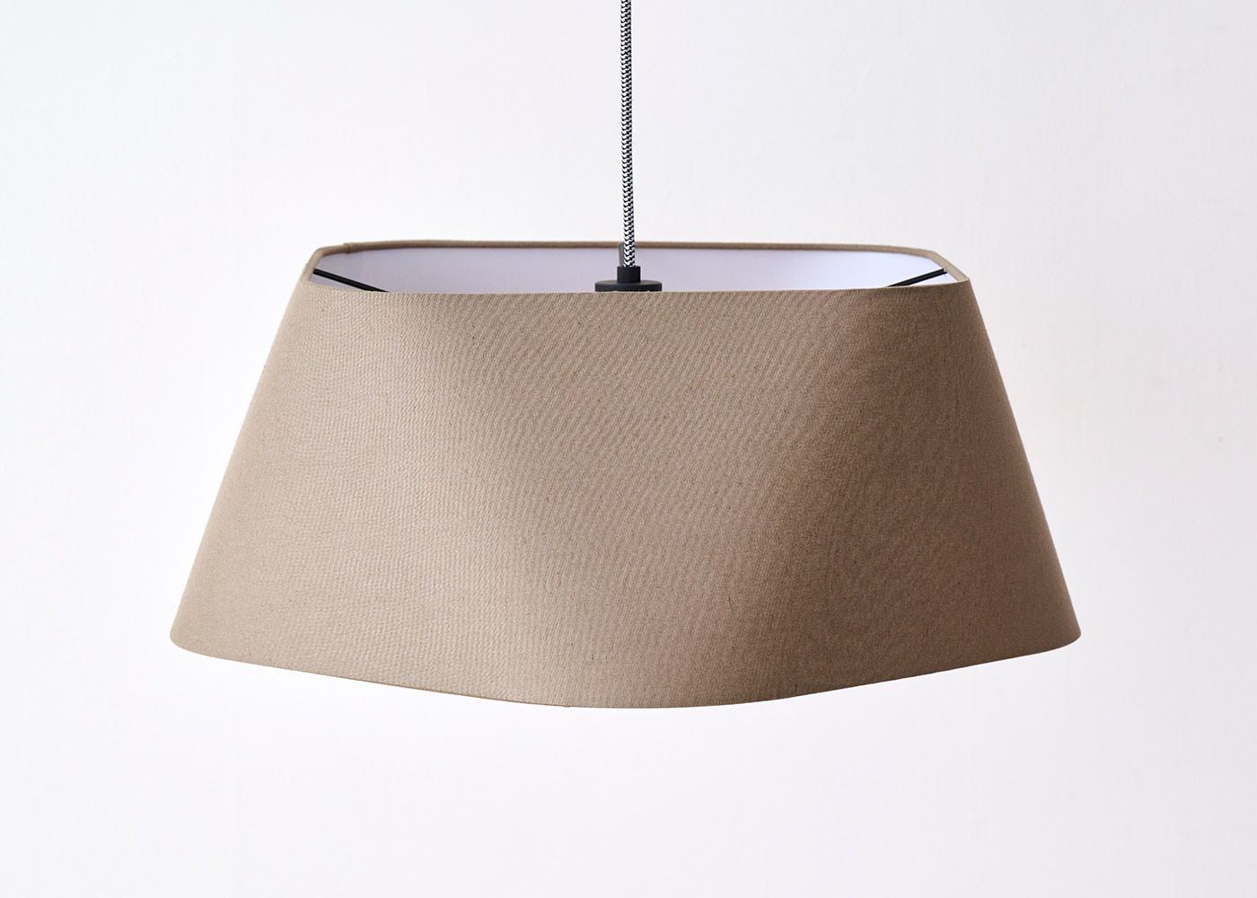 一見スタンダードな台形に見えるシェードですが、上下の丸みを帯びた四角形の角を位置を45度ずらして設計することで、これまでに無いユニークなフォルムのシェードに仕上がりました。