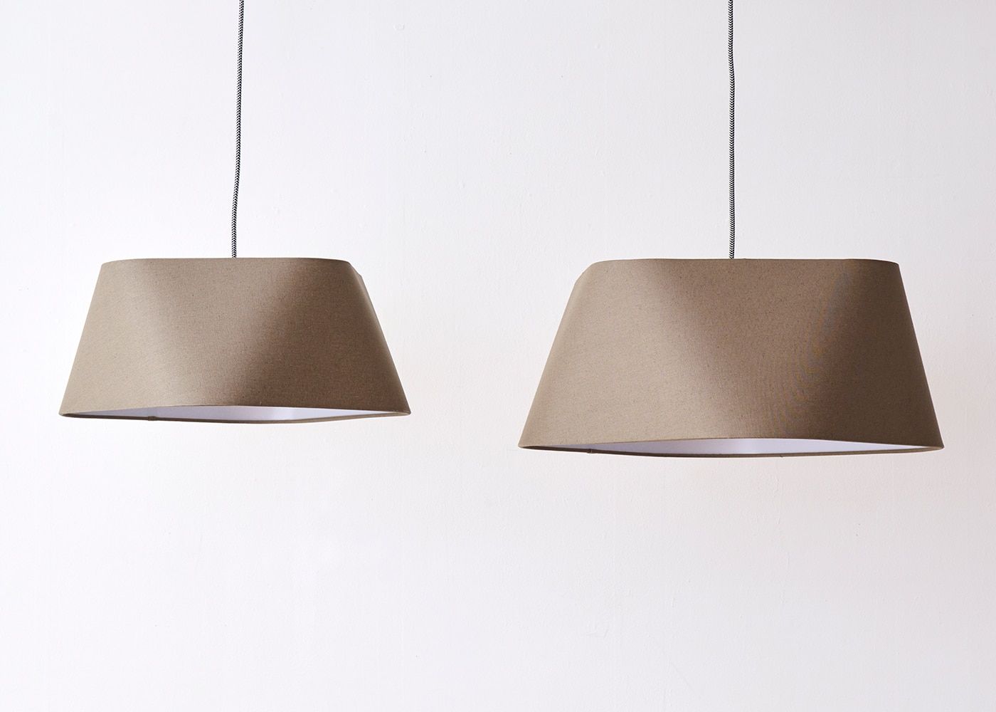 見る角度によってさまざまな表情を見せてくれるEspresso 3-pendant。一見スタンダードな台形のシェードに見えますが、実はユニークなフォルムをしたディテールにこだわったペンダントライトです。(写真はL ブラウン、電球OFF)