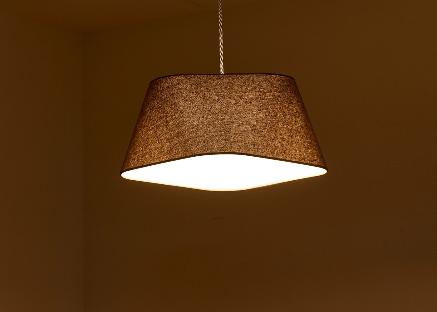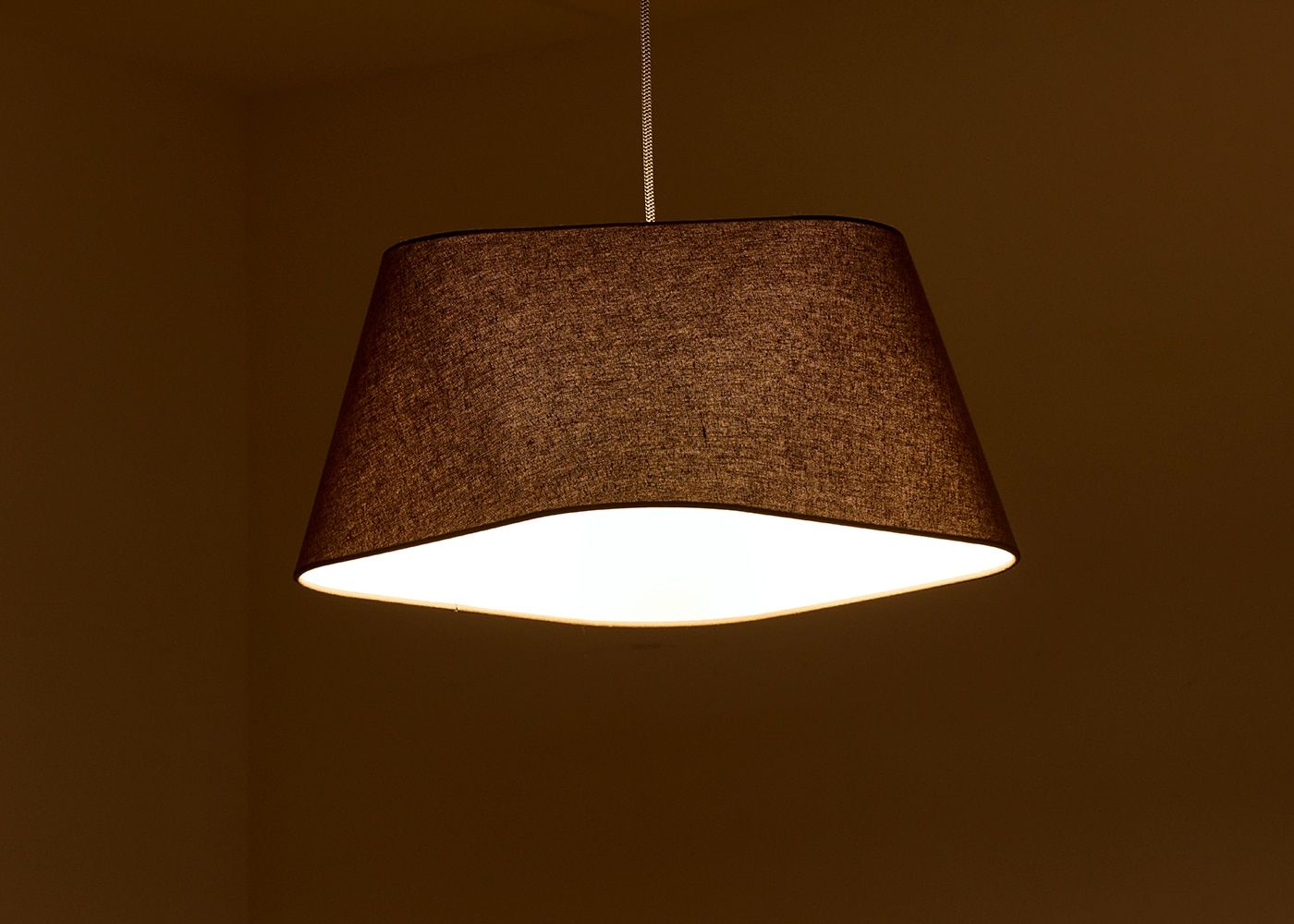 細かな織り目のファブリック越しにやさしい灯りが部屋全体を照らしてくれます。(写真はL ブラウン、電球ON)