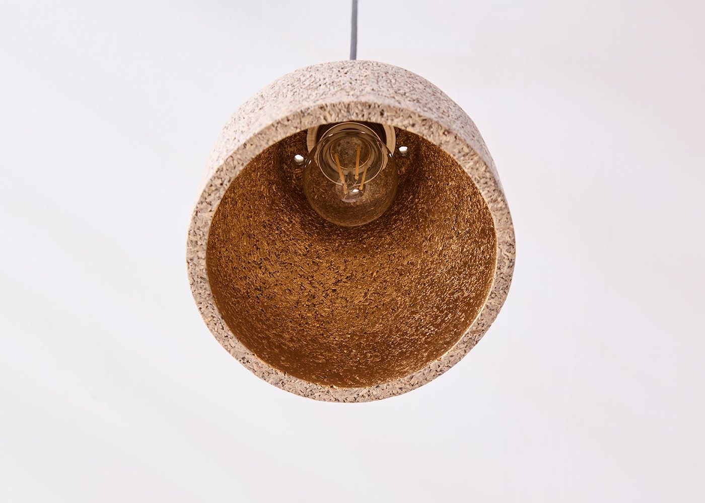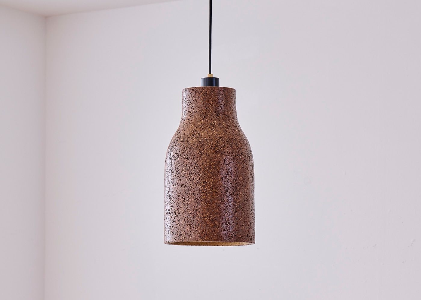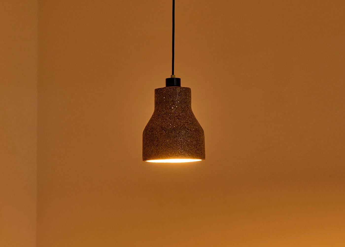 NOVA PENDANTのシェードには小枝や樹脂などの農業廃材を再製した素材を使用。廃材を再利用することで環境への負荷を抑え、唯一無二のデザインをお楽しみいただけます。(写真はL ブラウン、電球OFF)
