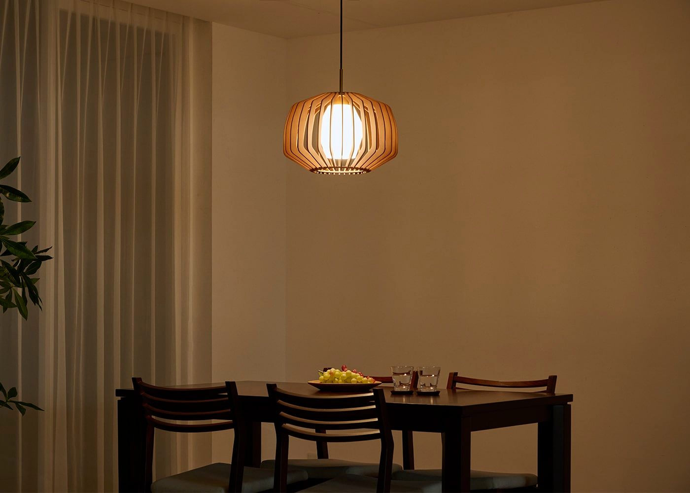 テーブル上を明るく照らし、中心から優しく広がる光が団らんのスペースを演出。家族が集う憩いの場として、温かみのある空間を作りをサポートし、心地よい時間が流れる空間を提供します。