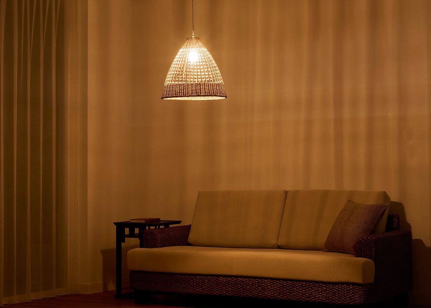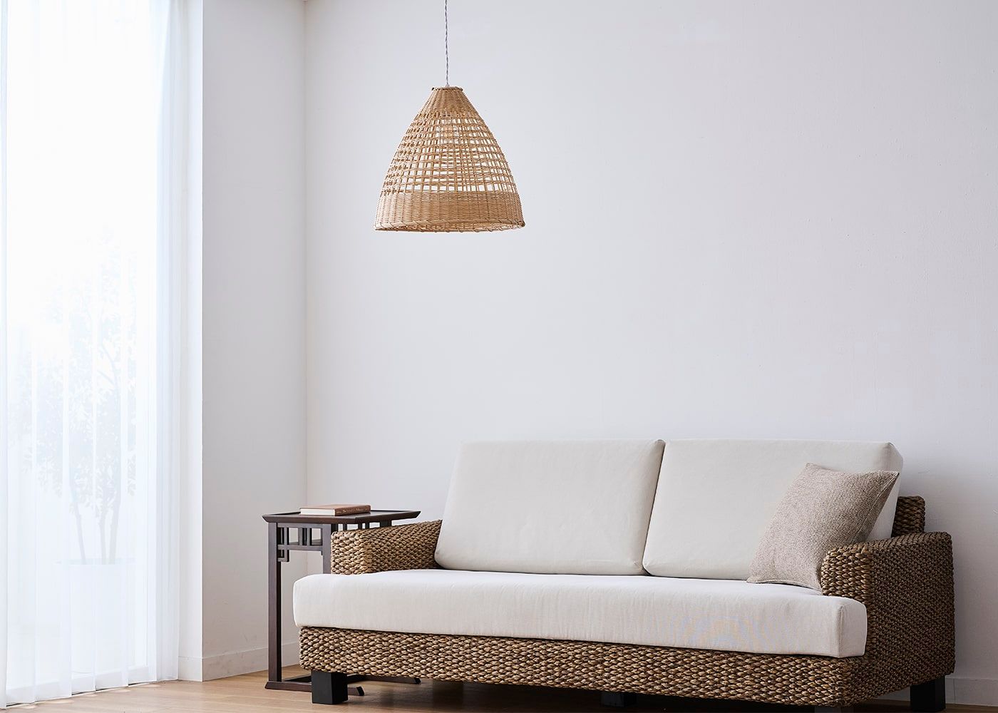 ペンダントライトはリビングルームの主照明としても活躍してくれます。竹製シェードが放つ素材感と、温もりを感じる