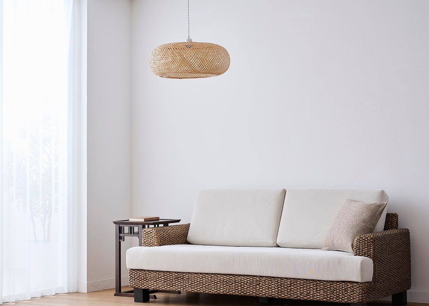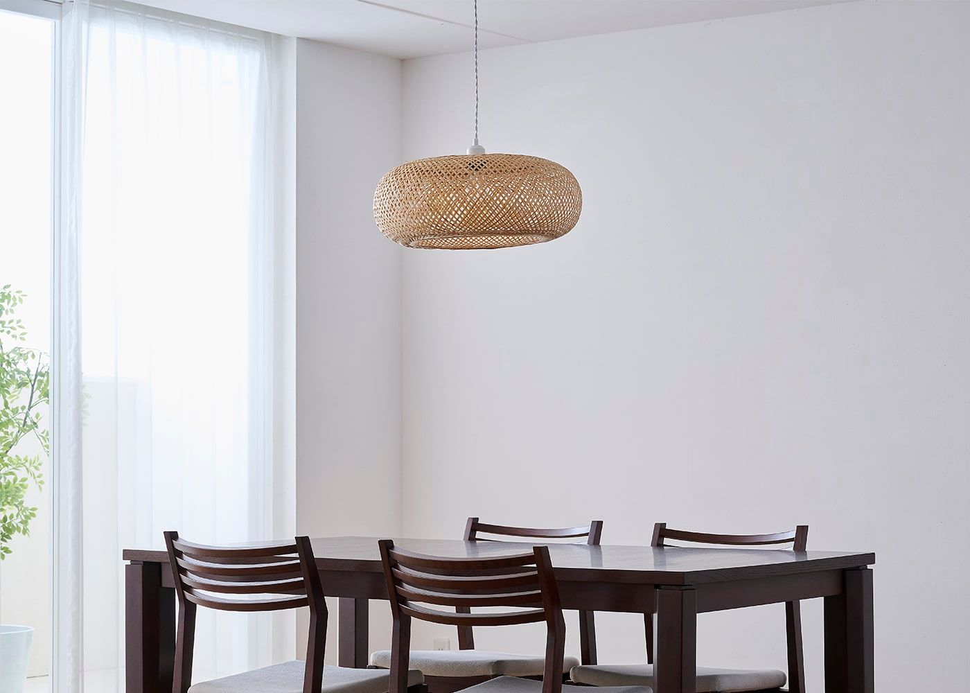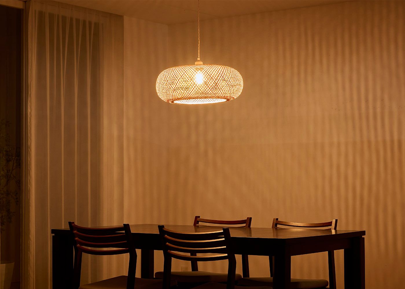 ペンダントライトはリビングルームの主照明としても活躍してくれます。竹製シェードが放つ素材感と、温もりを感じる