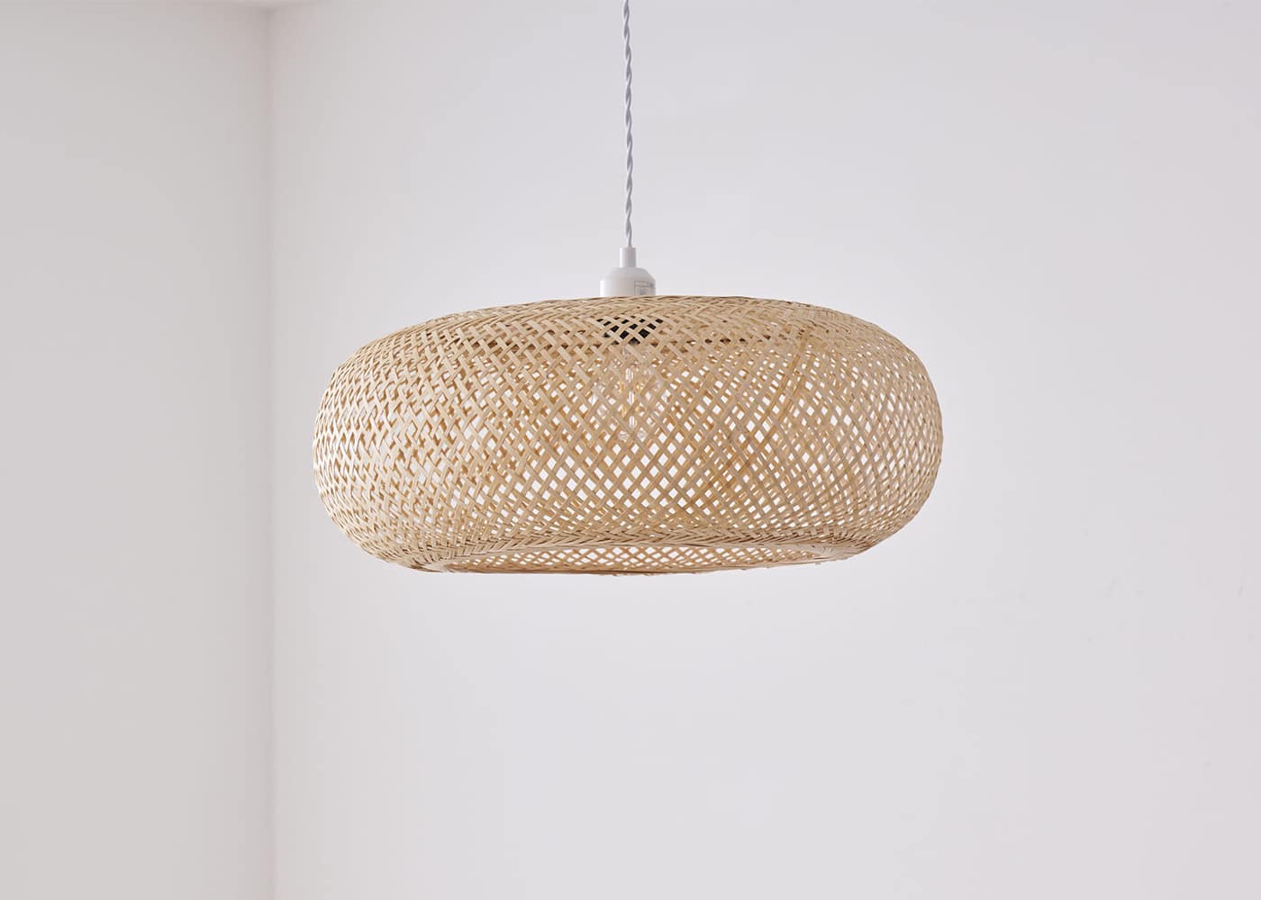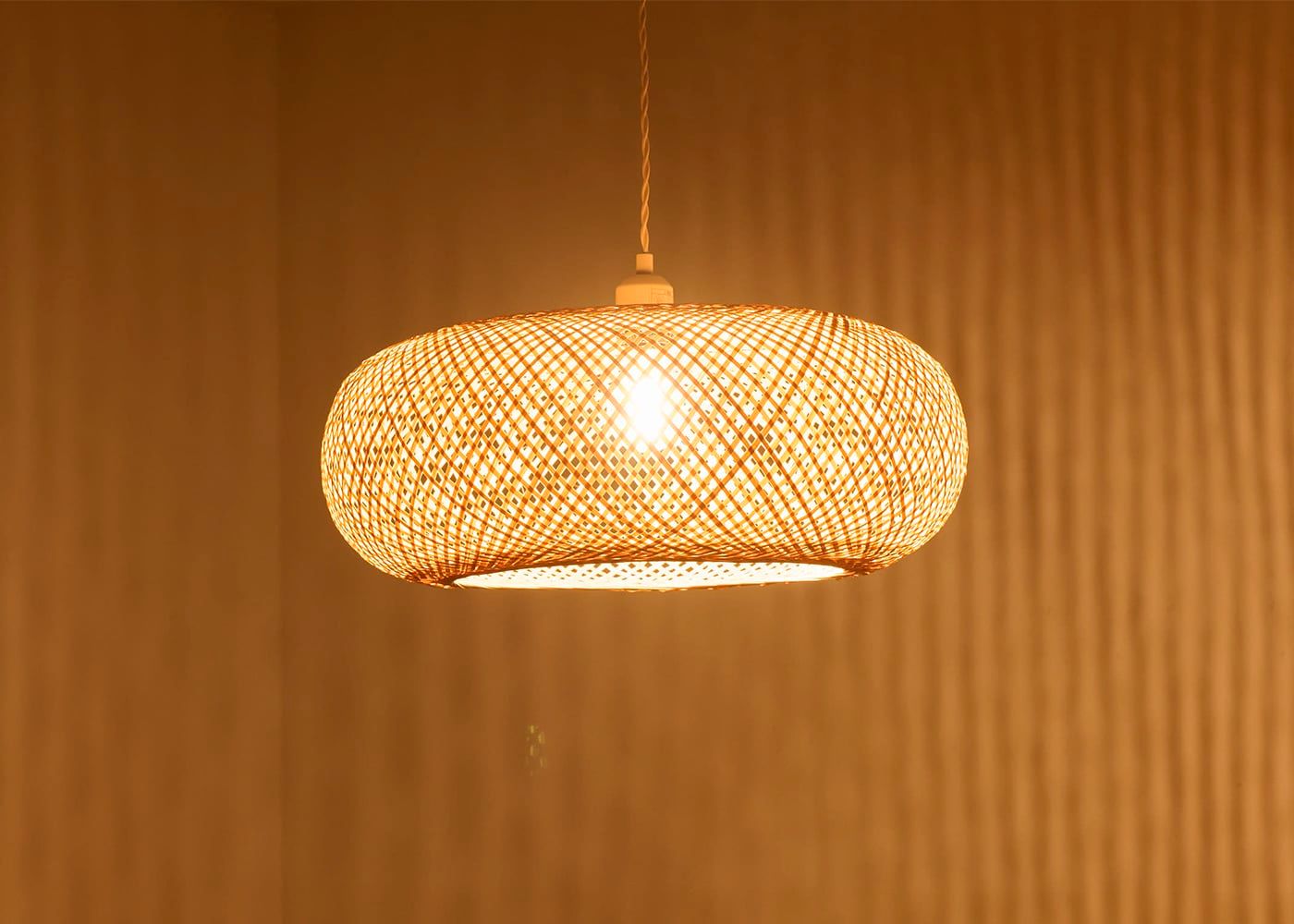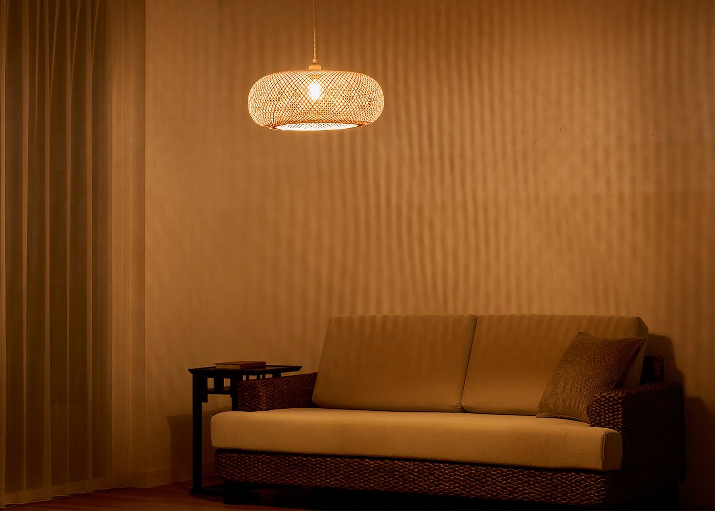 ペンダントライトはリビングルームの主照明としても活躍してくれます。竹製シェードが放つ素材感と、温もりを感じる