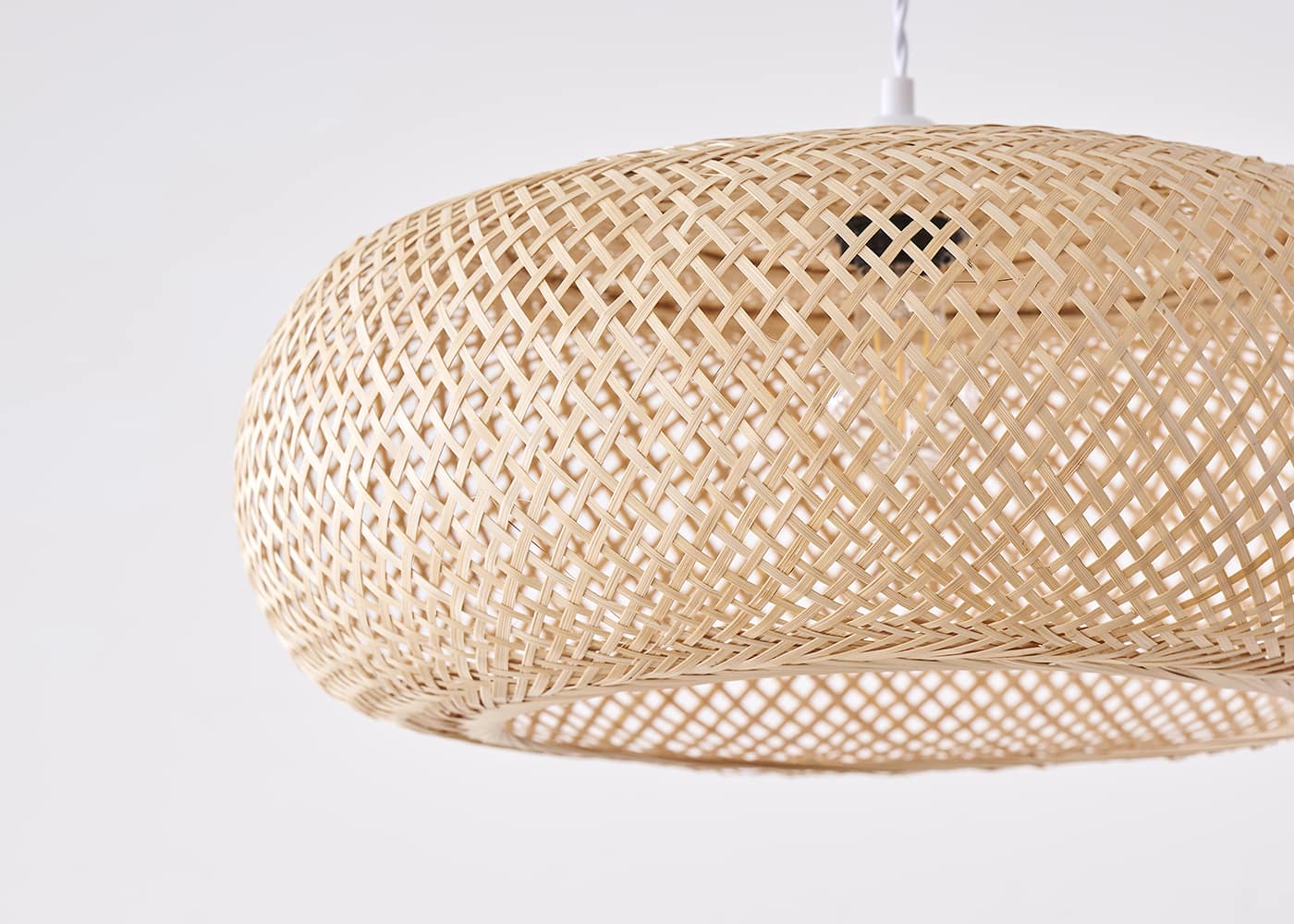 竹で編み込まれたドーム型シェードが特徴のバンブー・コーン・ペンダントライト。ダイニングに吊るすだけで、編み目や素材感が空間にやさしさを添え、温かみのあるナチュラルな雰囲気を演出します。